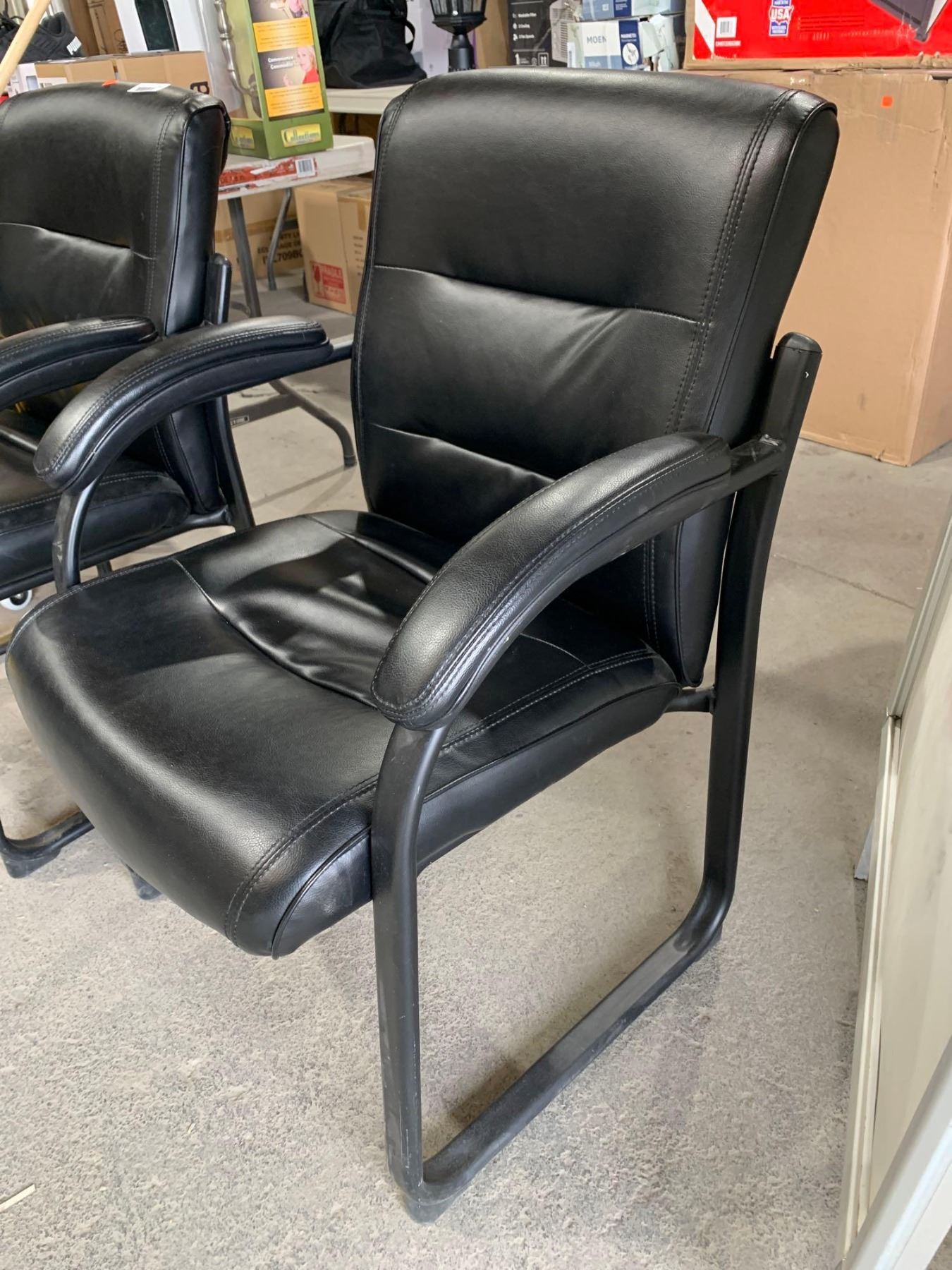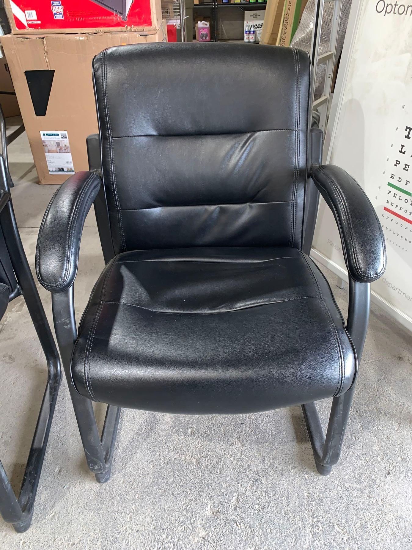 Black Bonded Leather Side Chair with Metal Frame