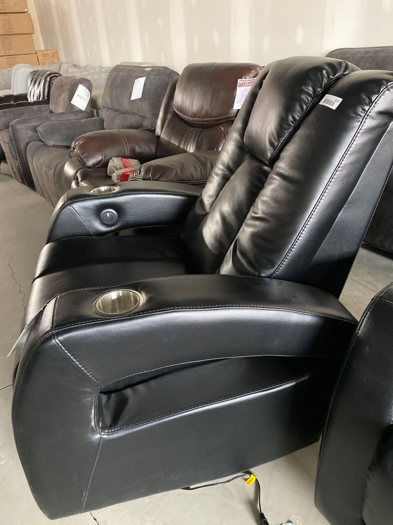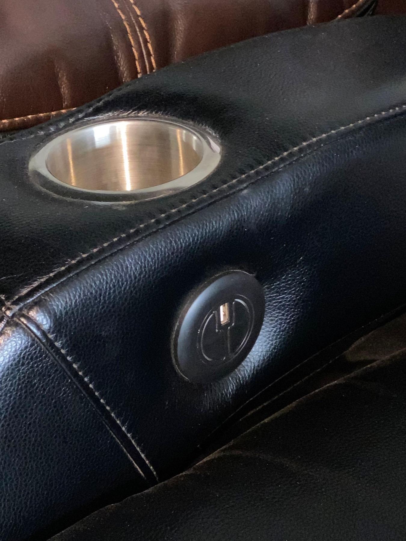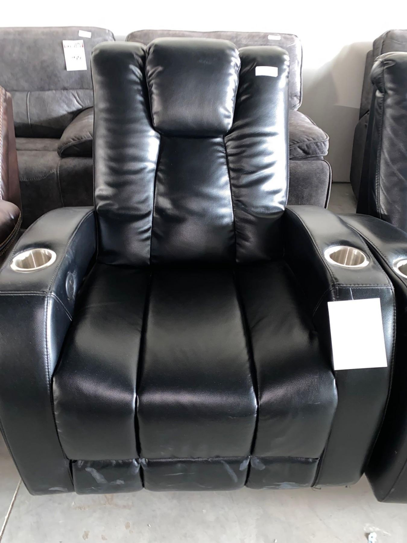 Black Electric Theater Leather Power Recliner With USB Port and Cup Holders