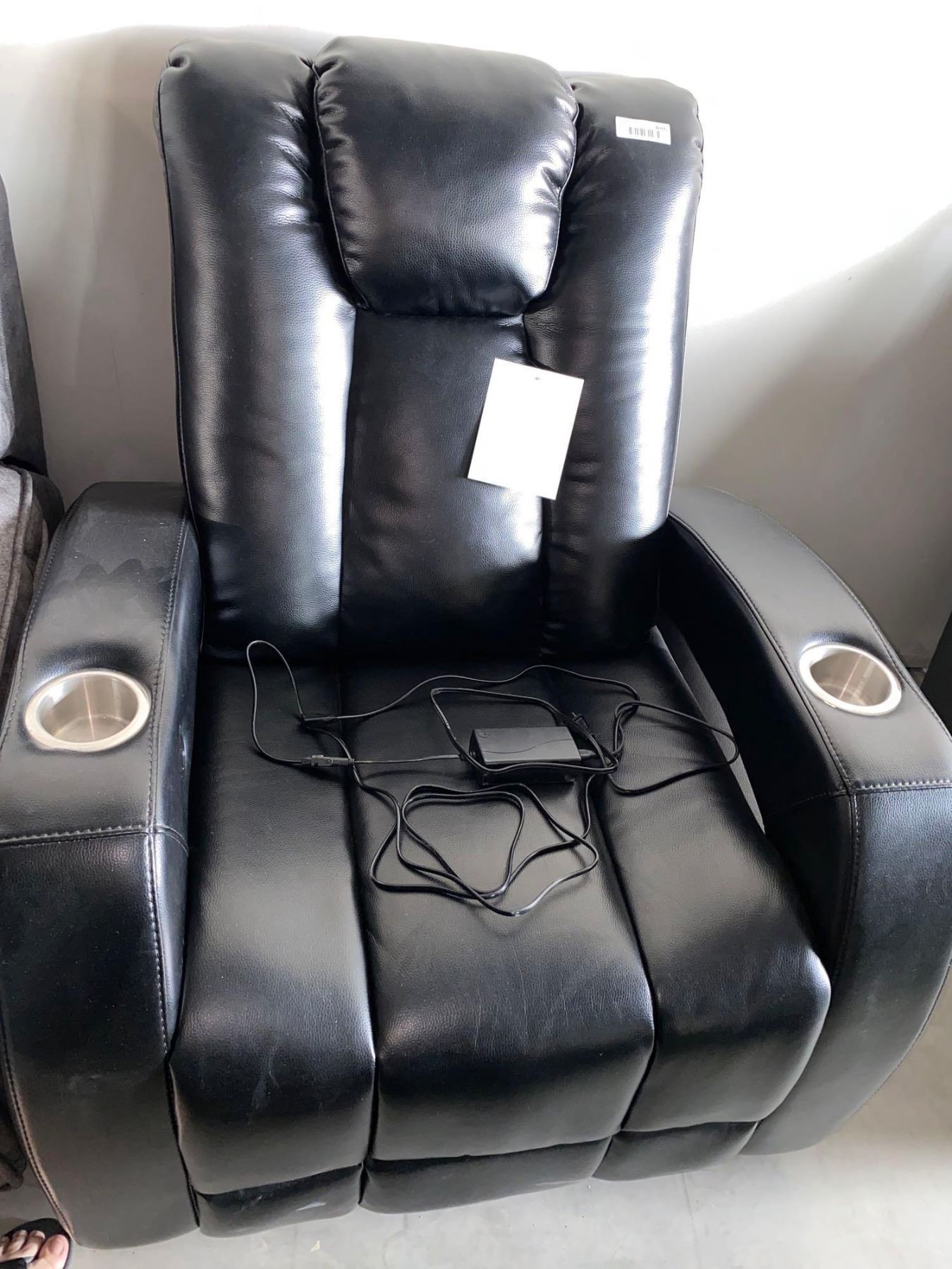Black Leather Power Theater Recliner With Cup Holders and USB Port