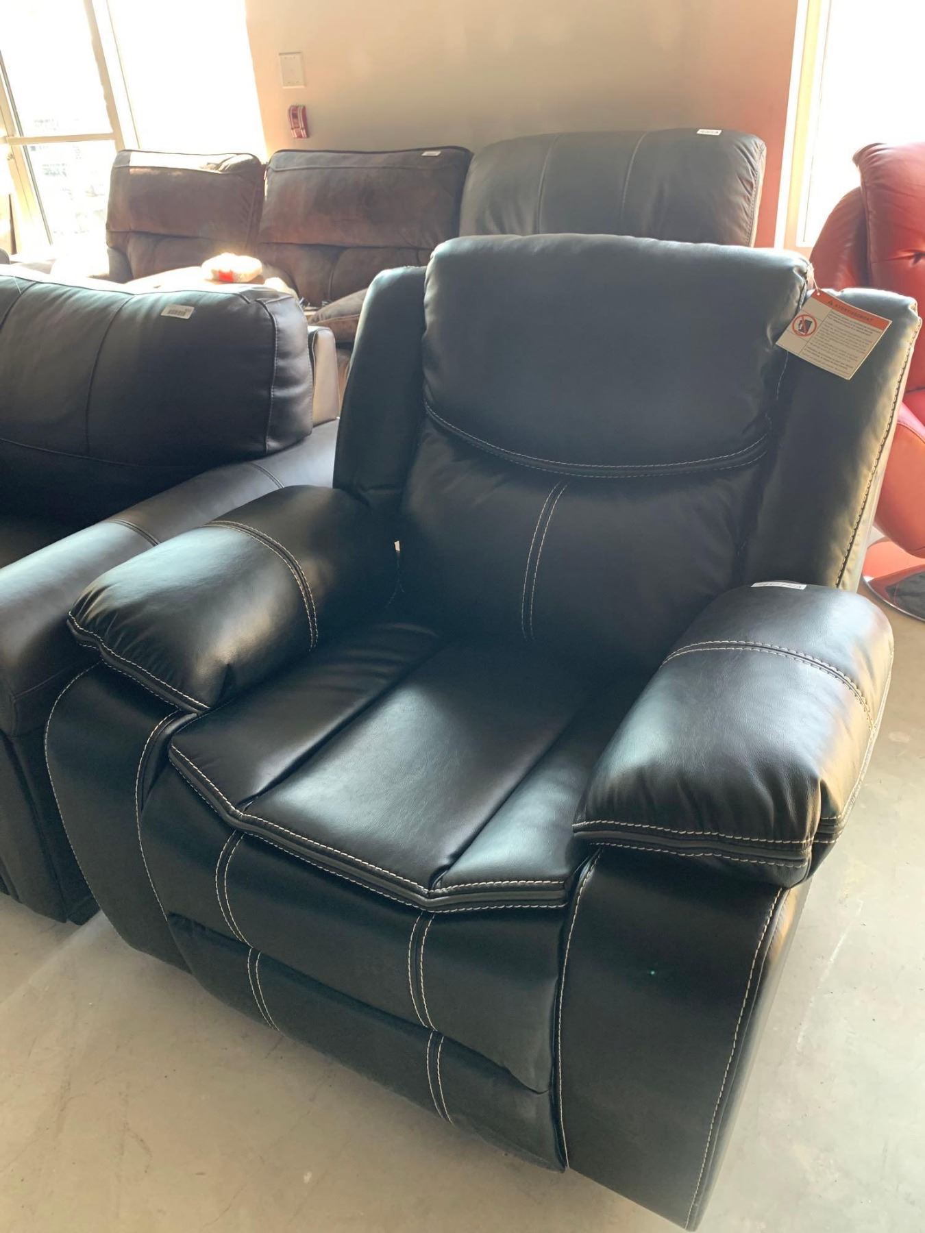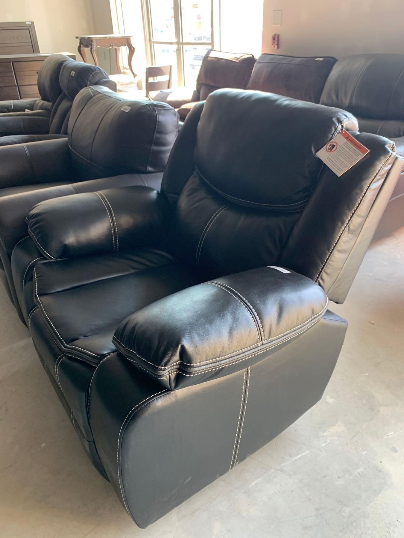 Black Leather Stitched Electric Power Recliner