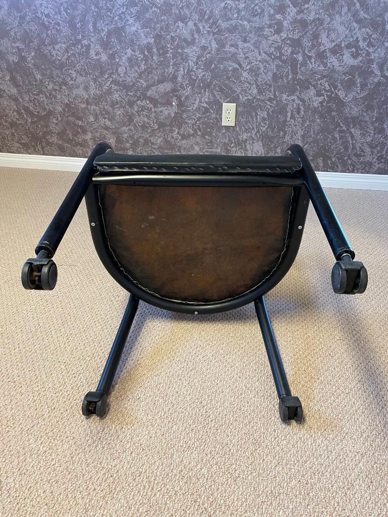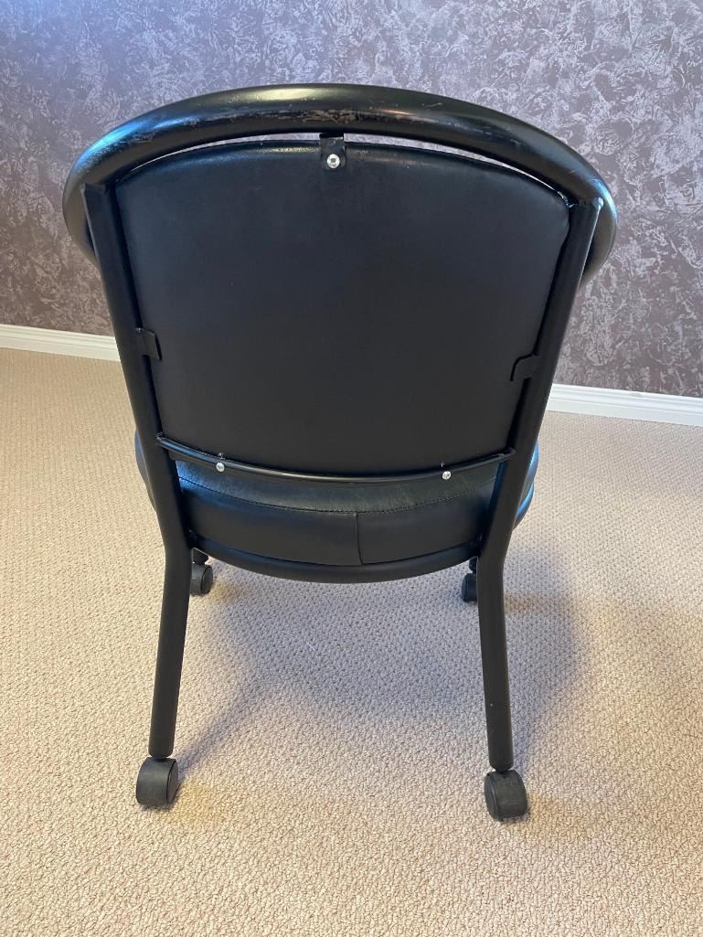 Black Vinyl Restaurant Arm Chair with castors -pre owned