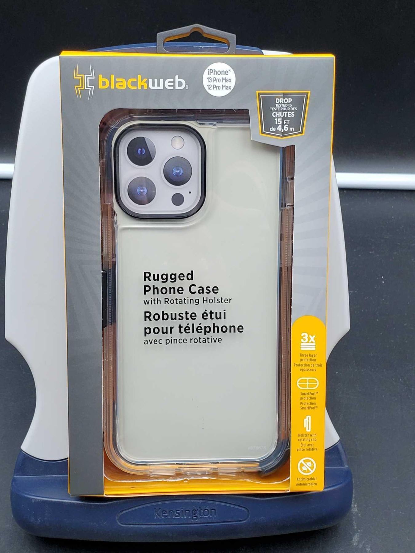 Black Web Rugged Phone Case with Rotating Holster for iPhone 13 Pro Max And 12 Pro Max Clear Case