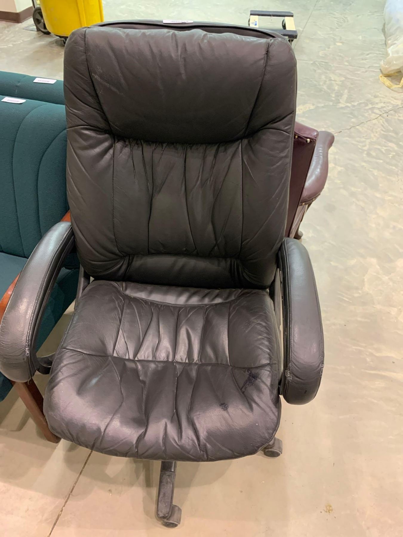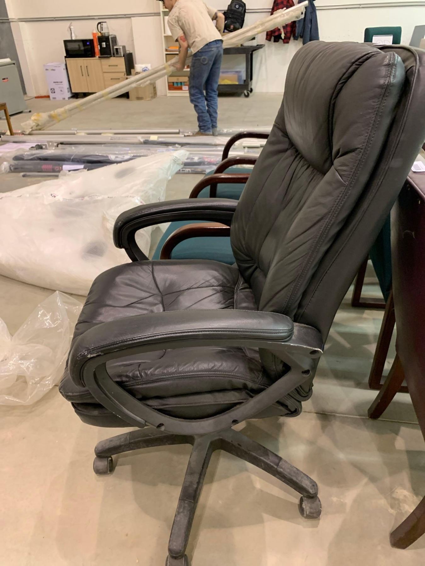 Black leather rolling office chair