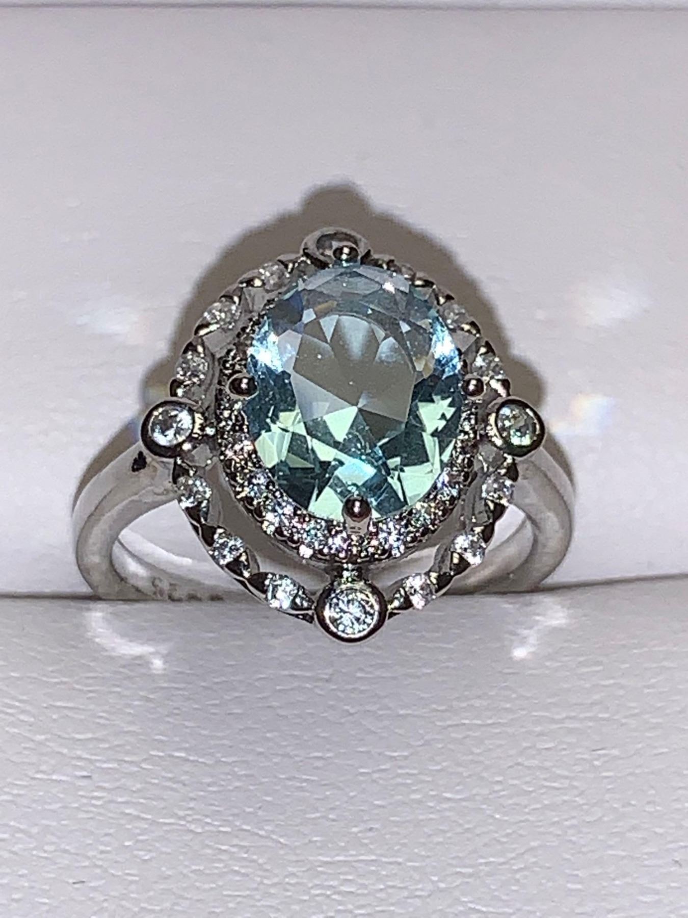 Blue Aquamarine Vera Wang Styled Ladies Round Cut Solitaire Ring