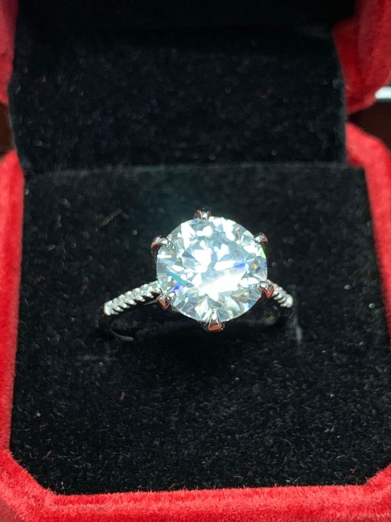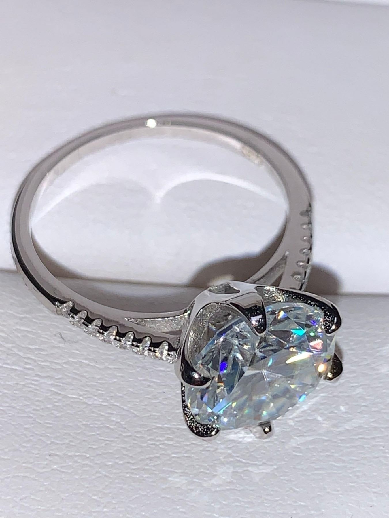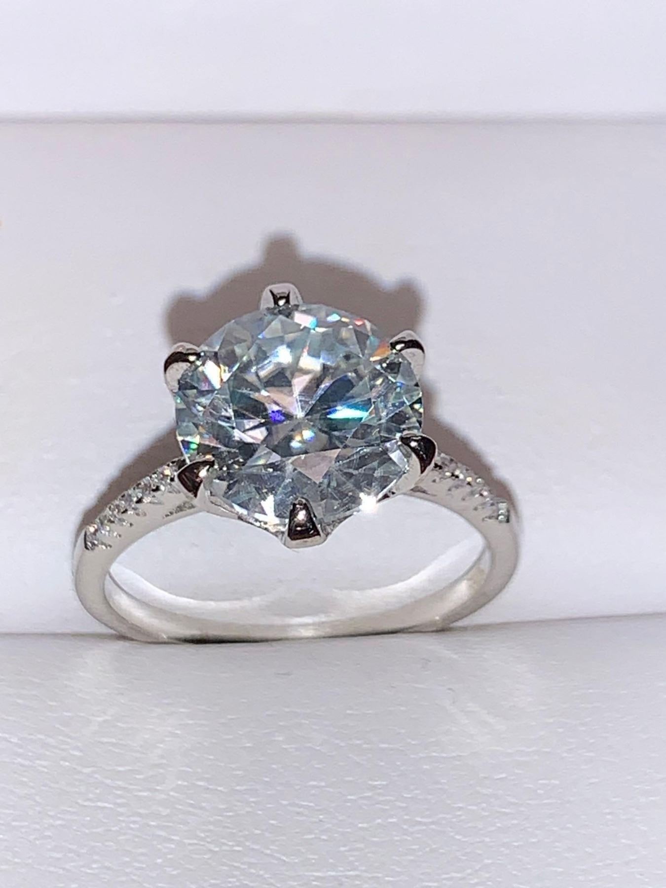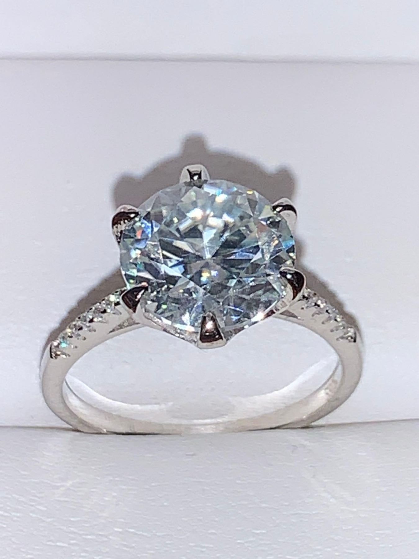 Blue Moisanite 5.14 Carat Solitaire Ring Sterling .925 Silver Rhodium Plated Includes Appraisal Certificate $3105.00