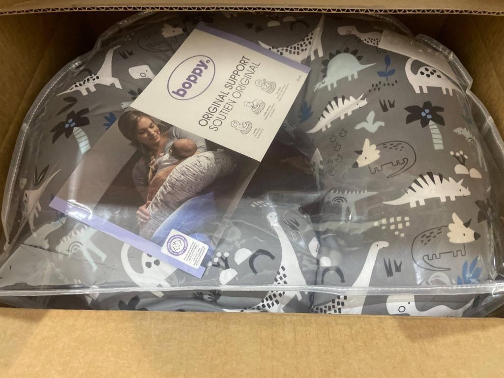 Boppy Pillow With Gray Dinosaur Design and Slipcover