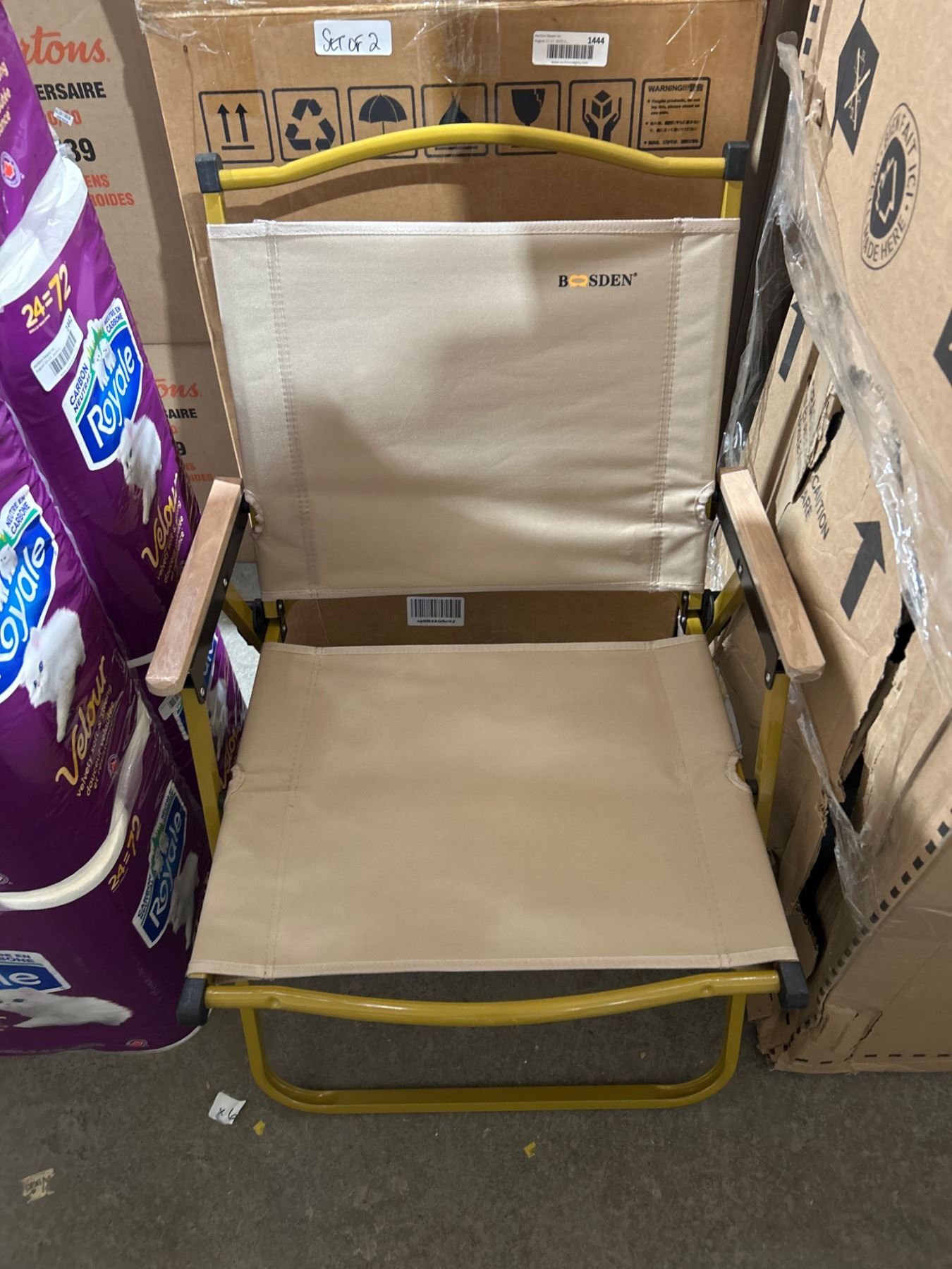 Bosden Folding Chair Set of 2 with Gold Frame and Beige Seat