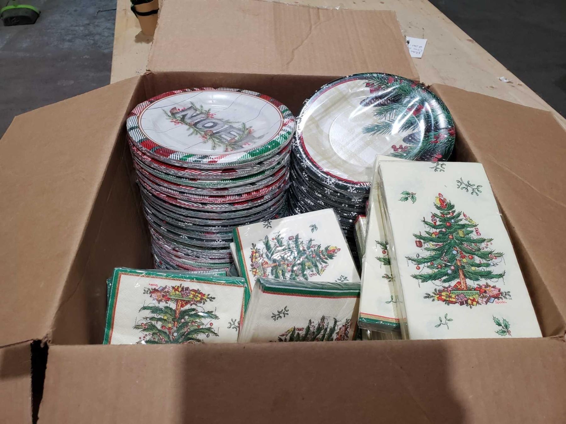 Box Lot of Christmas Snack/Desert Plates Napkins 12 plates/pack 20 napkins/pack