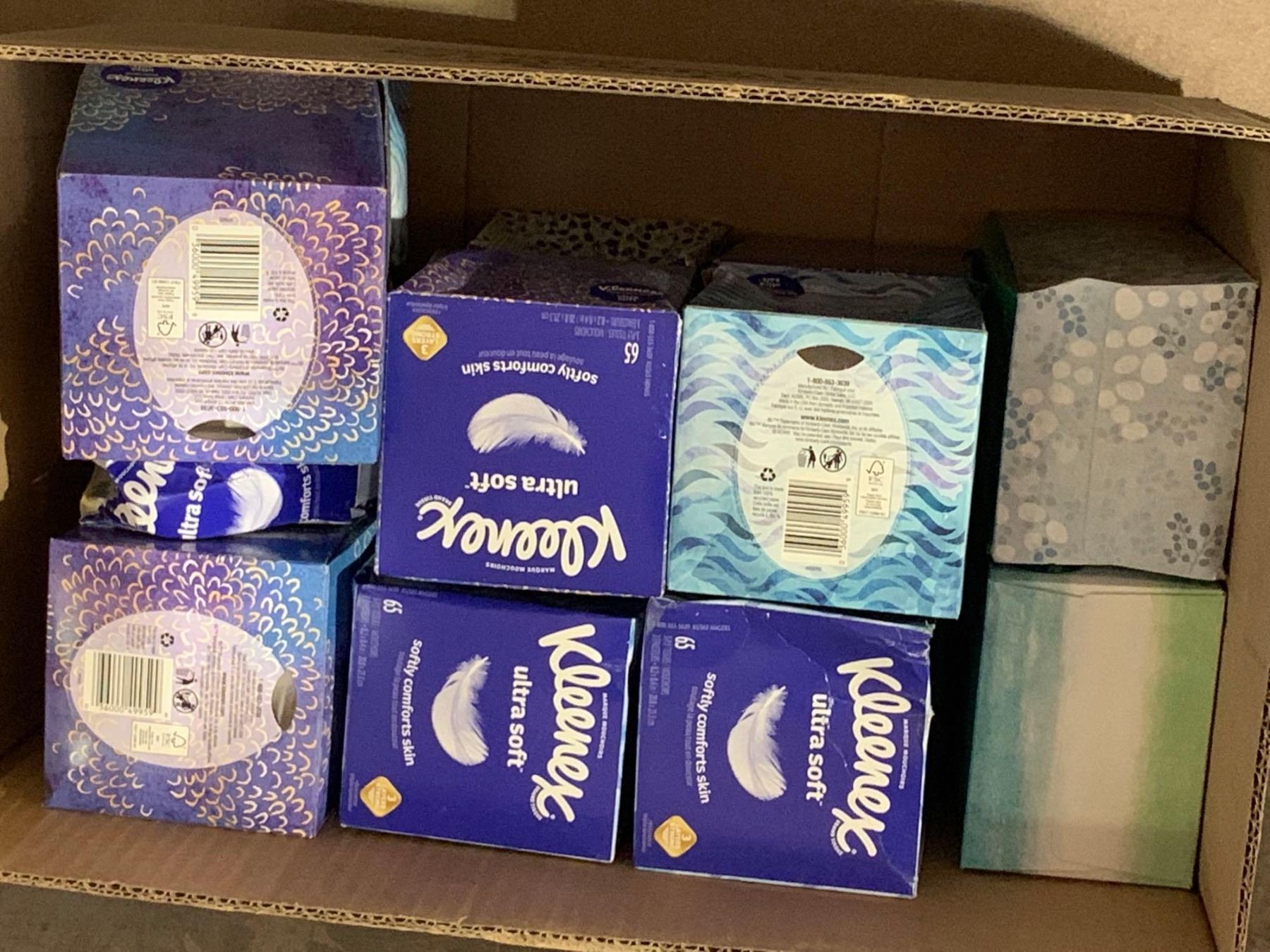 Box Lot of Facial Tissues 13 small boxes 2 large boxes