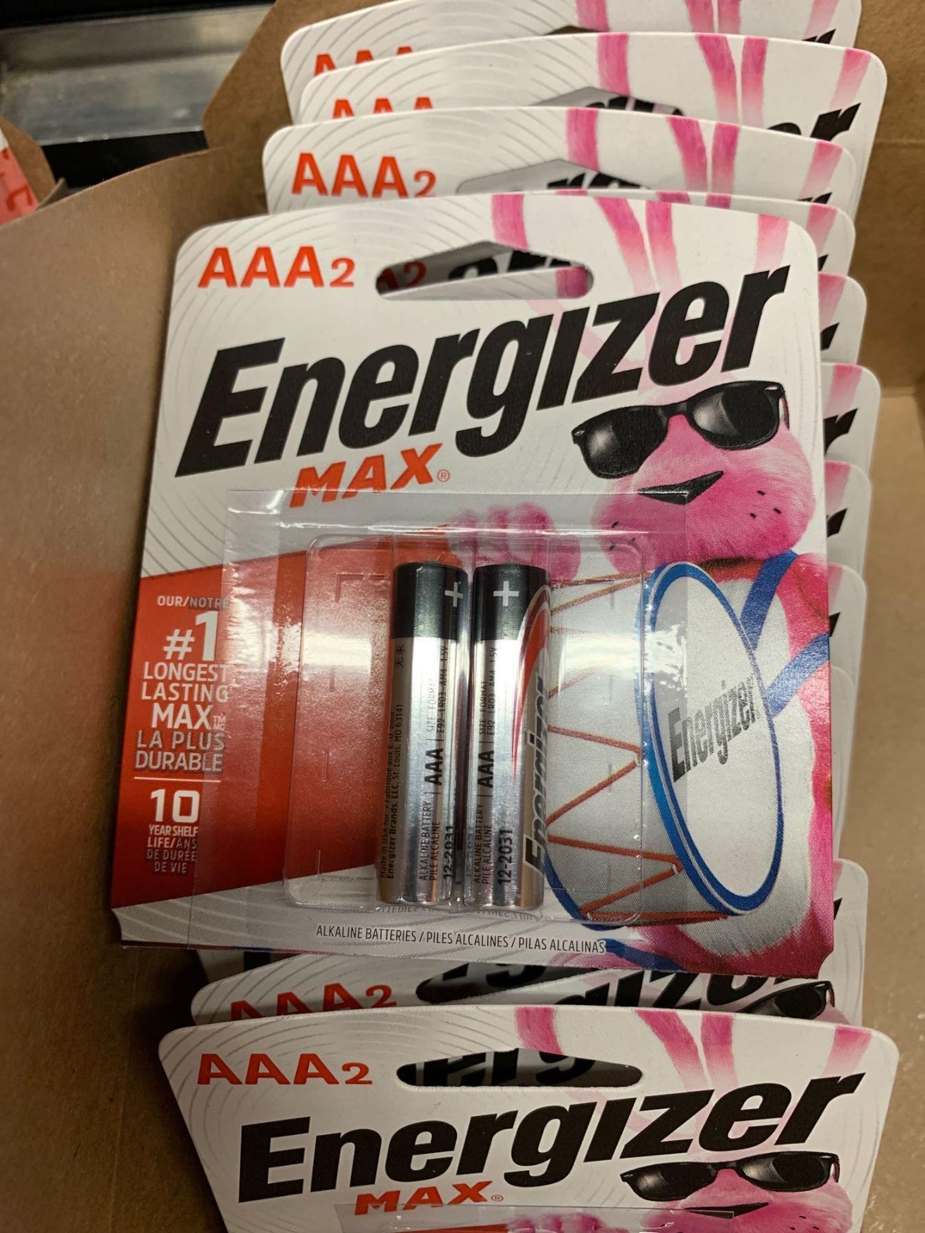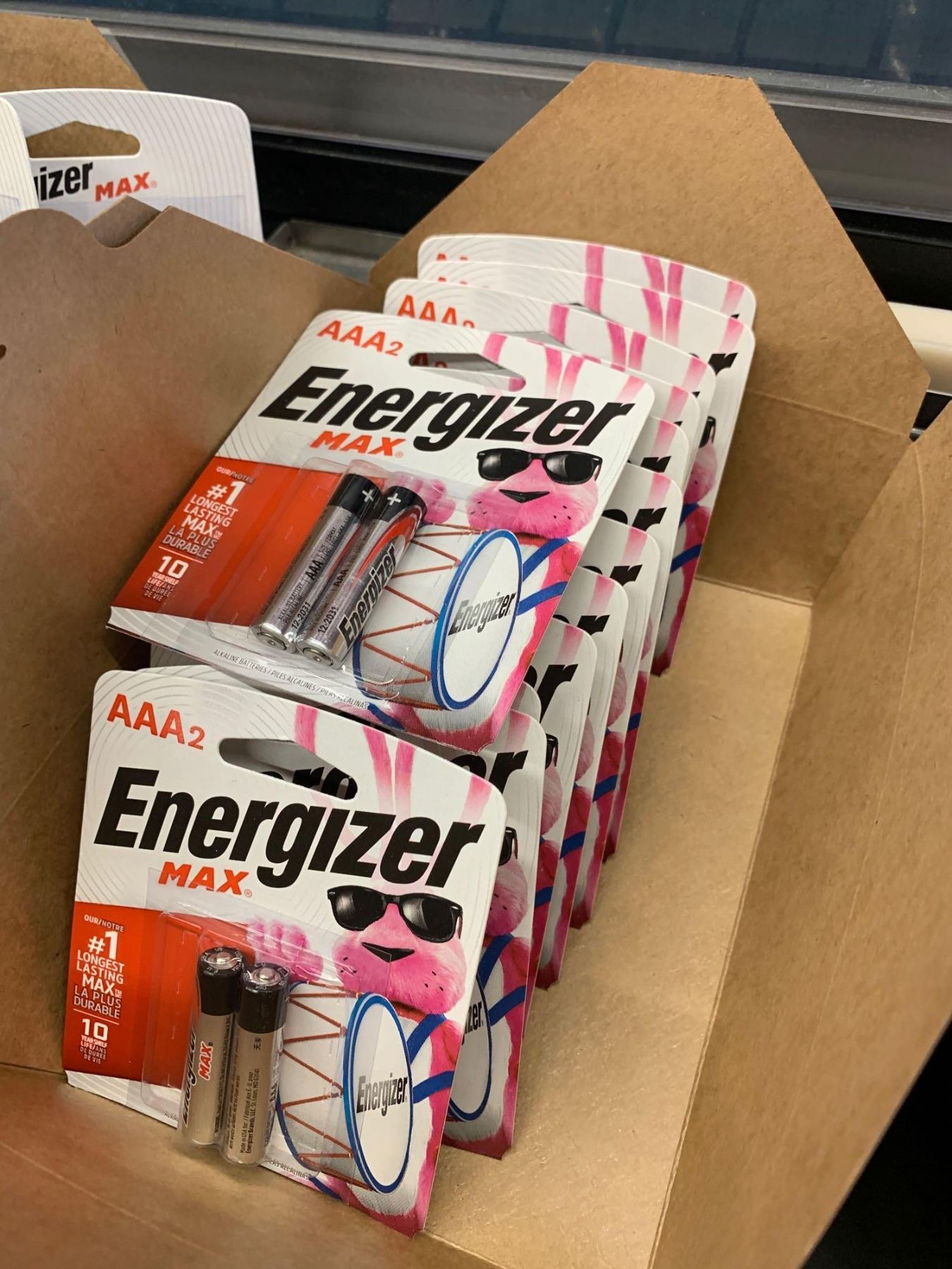 Box of 2-Pack AAA Energizer Batteries
