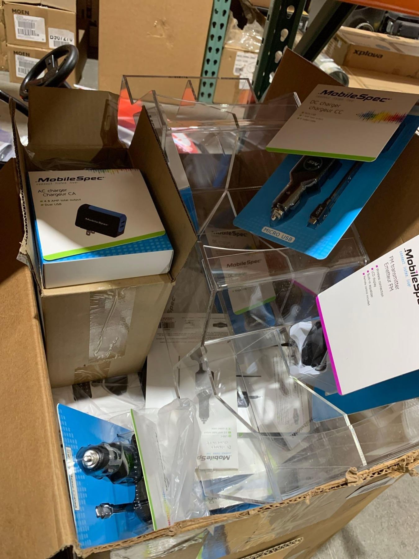 Box of assorted Mobile Spec phone accessories