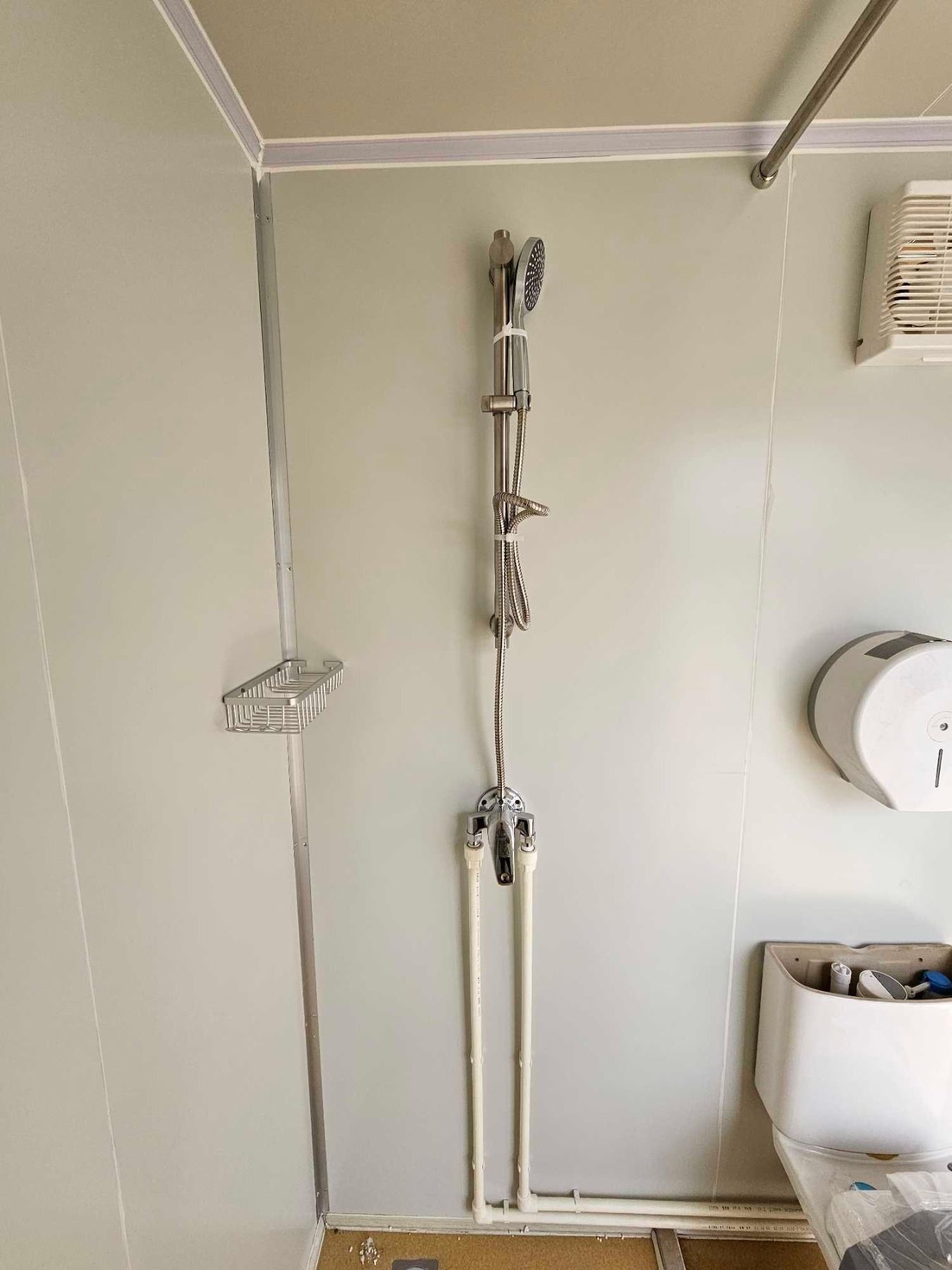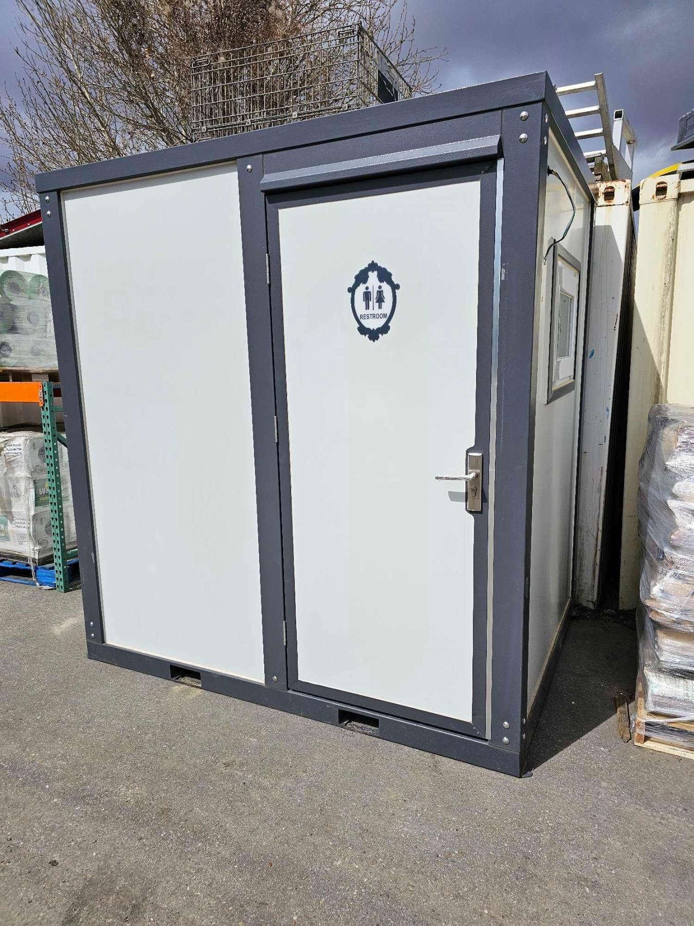 Brand New Unused Bastone 110V Portable Toilets with Shower - Women. 84L x 63D x 90T  This Bastone Portable Restroom with Shower is the perfect solution for your outdoor camping and activities needs. This stand-alone mobile bathroom unit is easy to move, and provides multiple functions all in one: toilet, sink, and shower. The interior design adds more beauty and pleasure to you when using. The compact design makes it easy to transport and set up. All you need is a 110V power source, a water supply and a septic system to tie in waste from the toilet. Get ready to enjoy the convenience and comfort of this Bastone Portable Restroom with Shower.