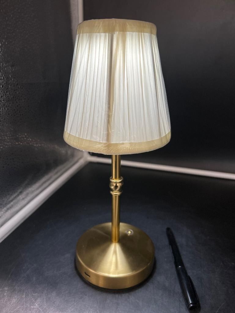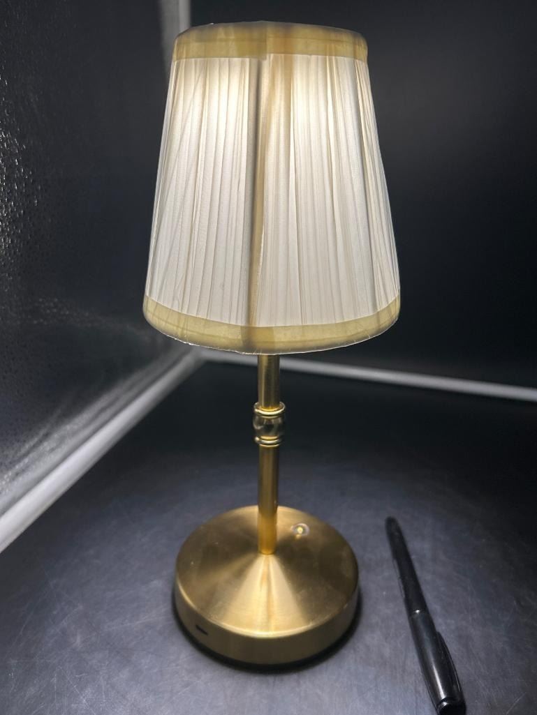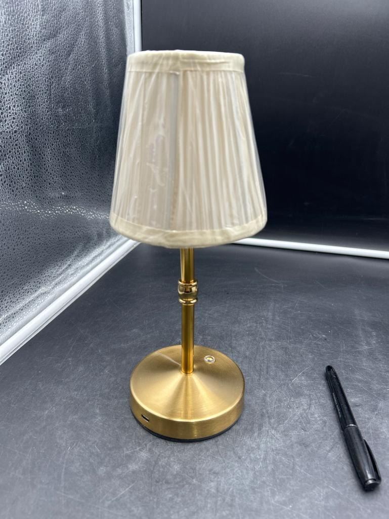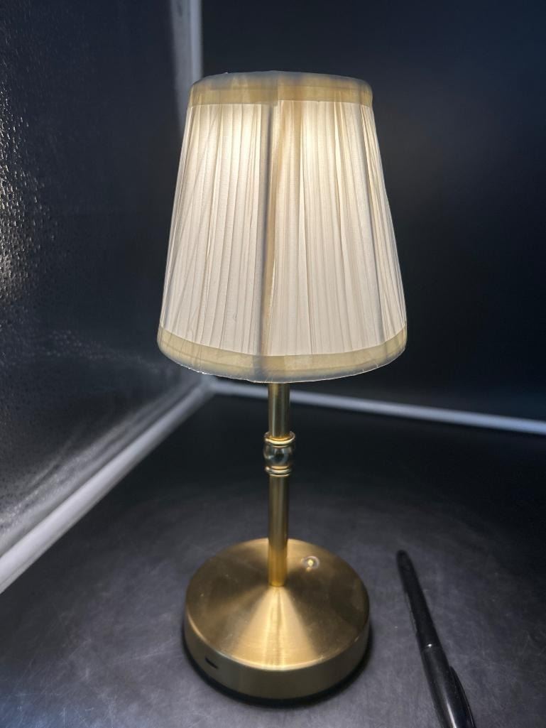 Brass Table Lamp With Pleated Fabric Shade and USB Port Multi Touch Light