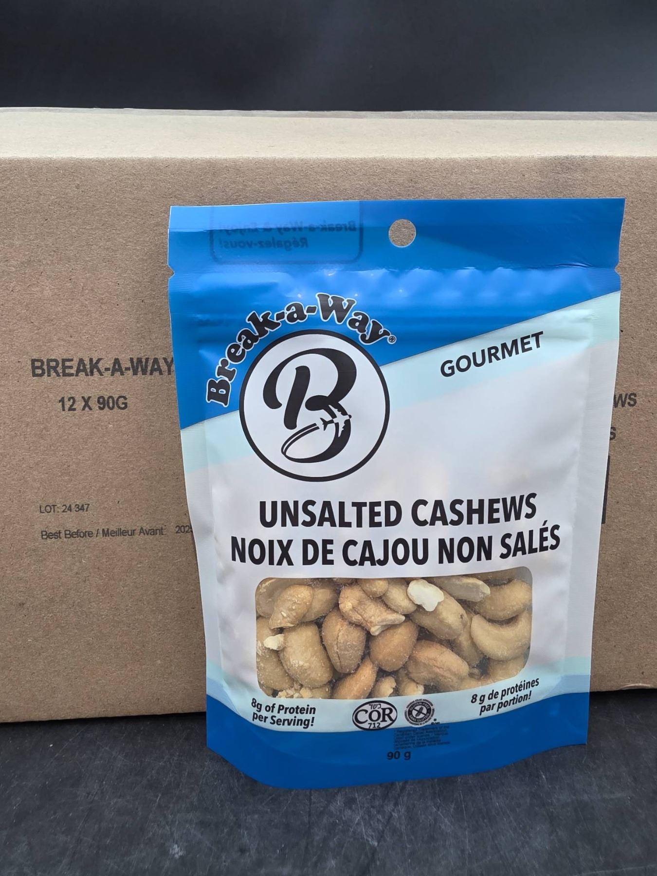 Break-A-Way Gourmet Unsalted Cashews, 12 x 90g Packs