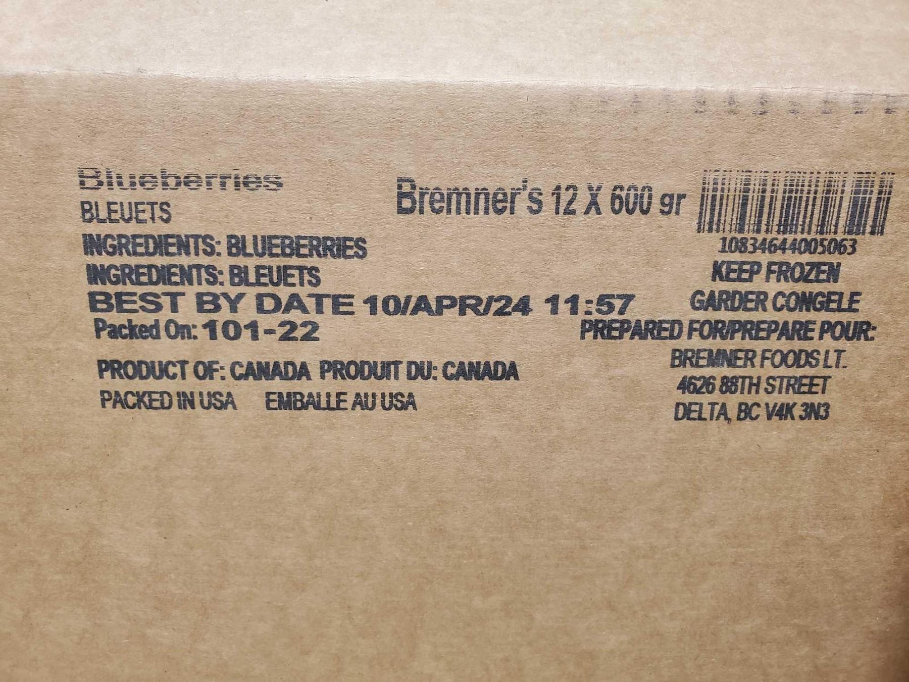 Bremner's Frozen Blueberries 12 x 600gr
