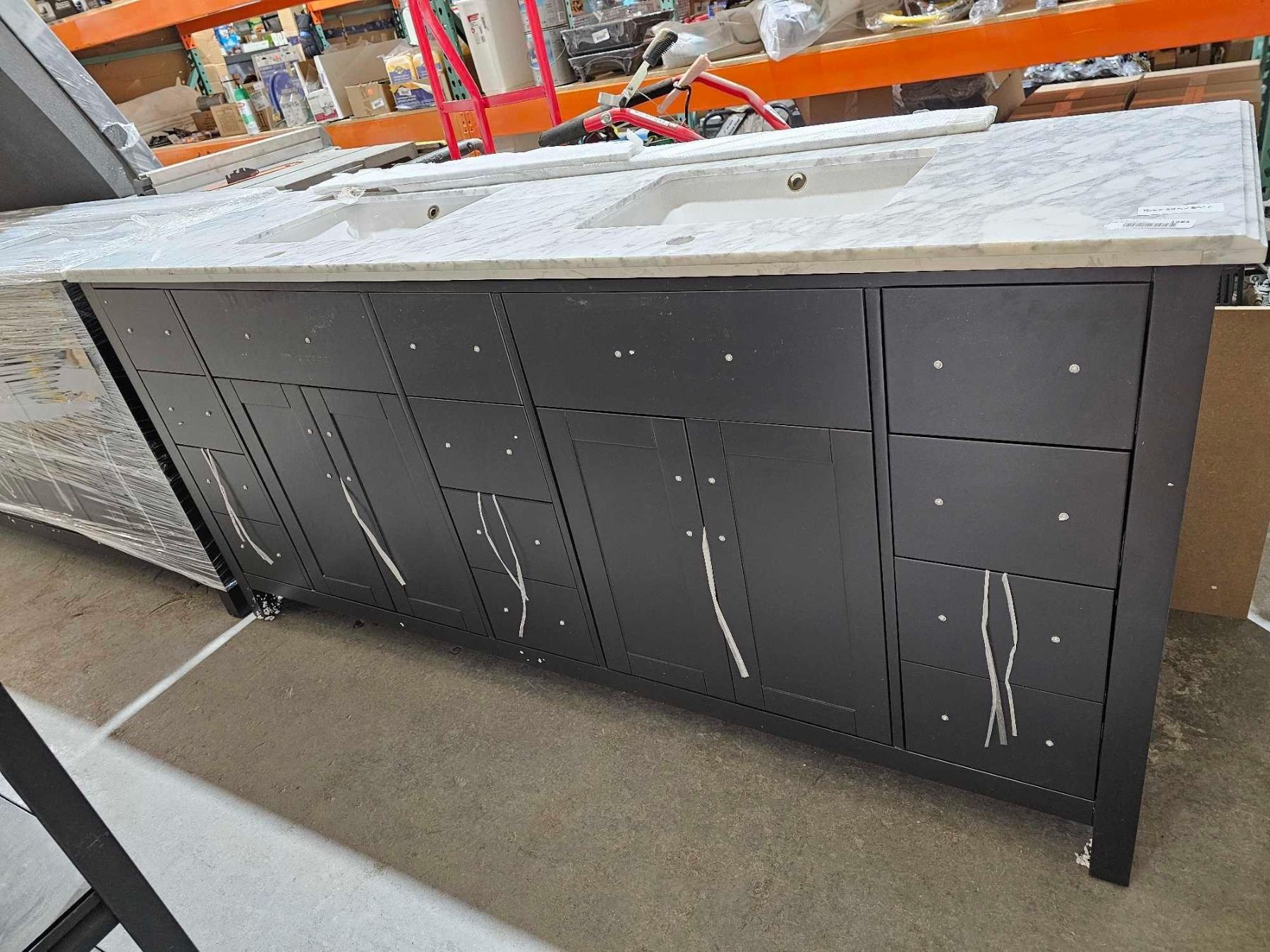 Brown Dual Sink, Marble Top Bathroom Vanity 72Lx22Dx35"T NEW