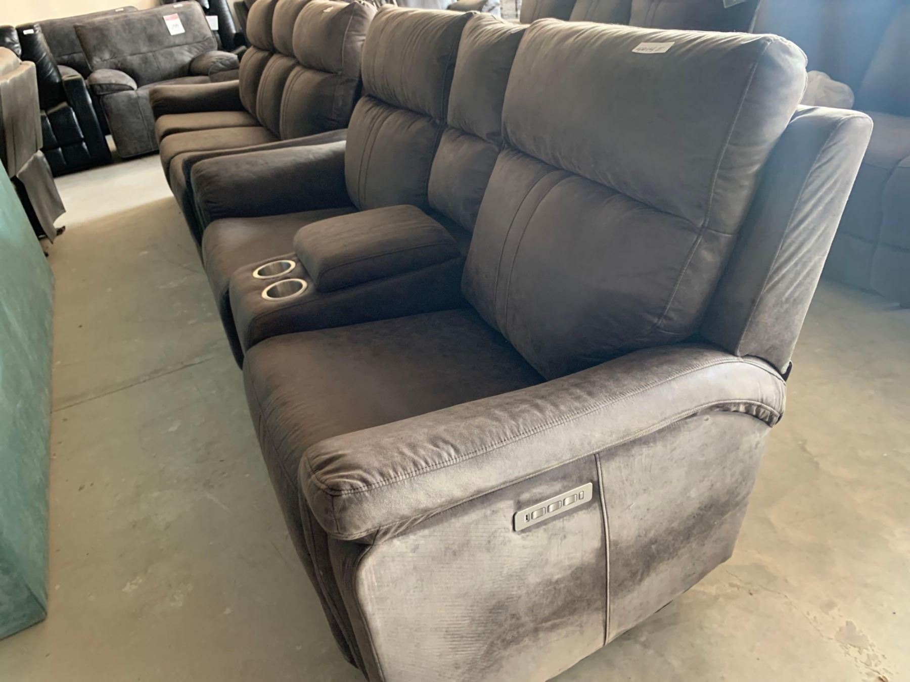 Brown Micrifiber double reclining theater seating