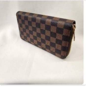 Brown and Black Checkered Zipper Wallet with Gold Hardware