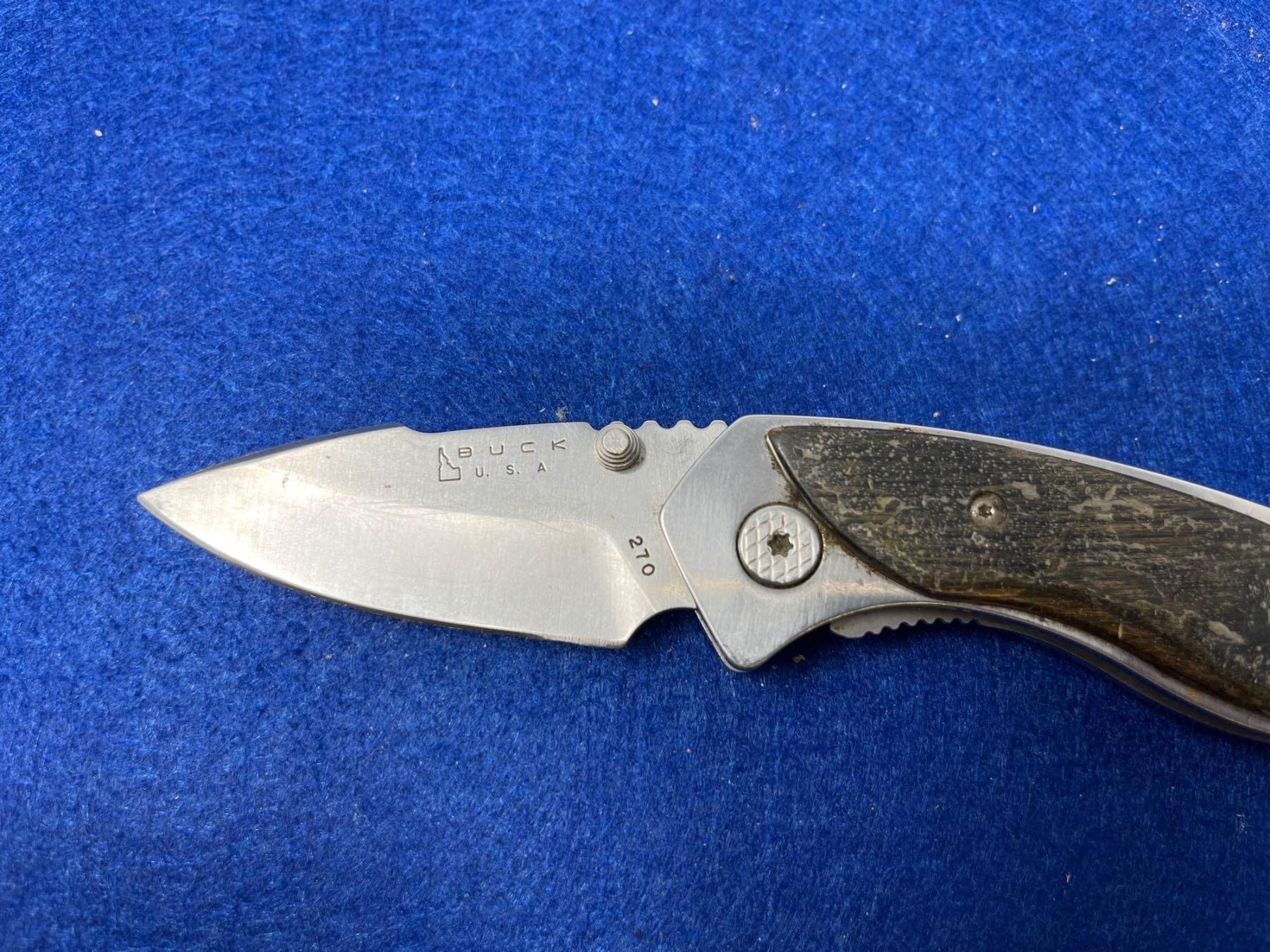 Buck USA Dark Green Camo Lock Blade folding pocket knife model 270
