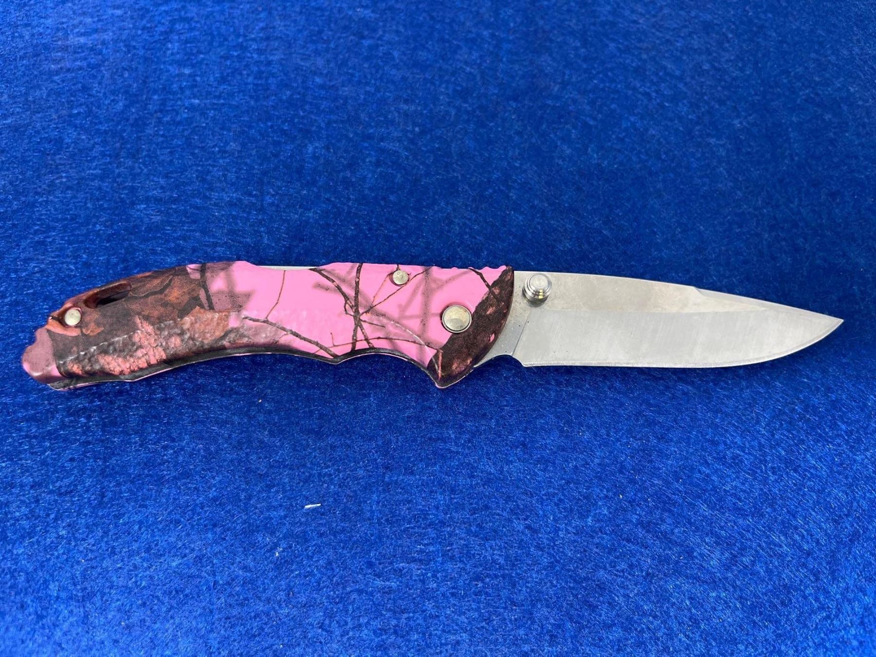 Buck USA Pink Camo Lock Blade folding pocket knife model 284