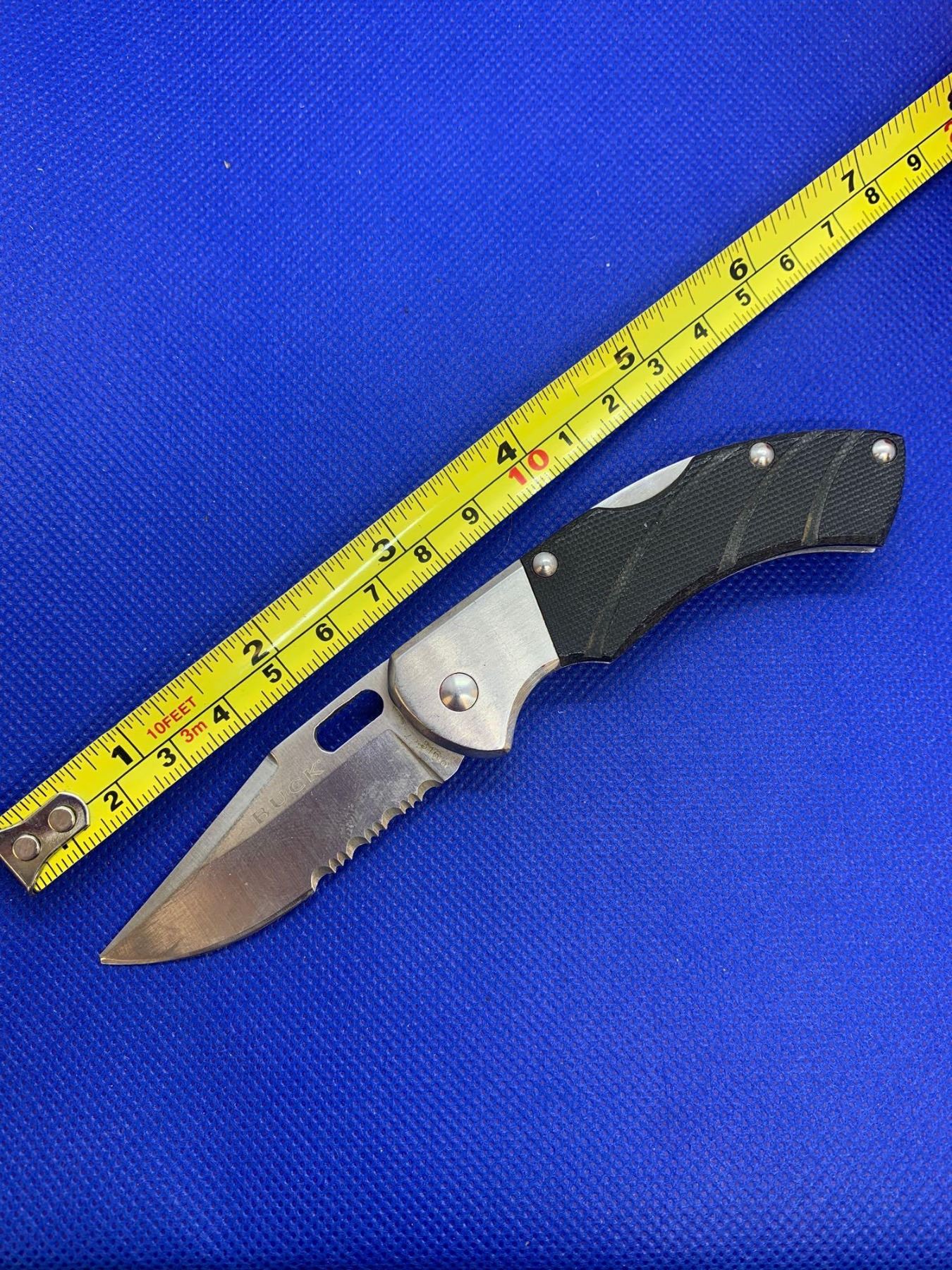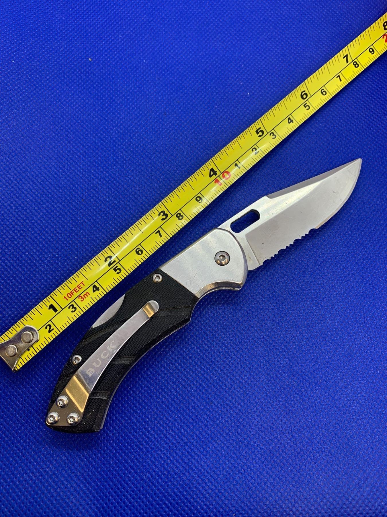 Buck folding pocket knife with clip.