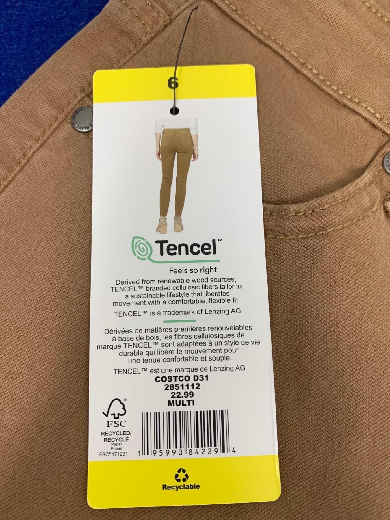 Buffalo by David Bitton Tencel High Rise Stretch Waist Skinny Pant (29in Inseam Size 6 Waist)