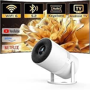 ?Built-in Apps? Projector 4K with WiFi 6 and Bluetooth, Portable Outdoor Projector with ?Auto Keystone?, 270° Rotation Movie Projector Compatible with HDMI, USB, Smartphone