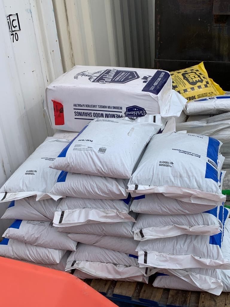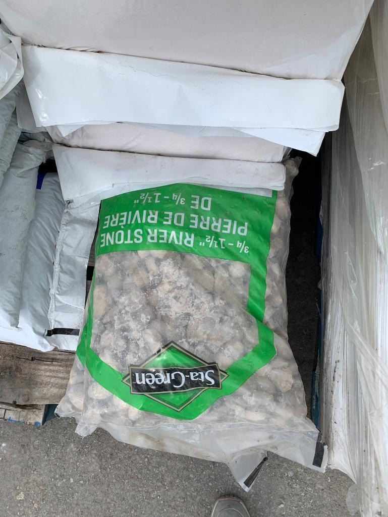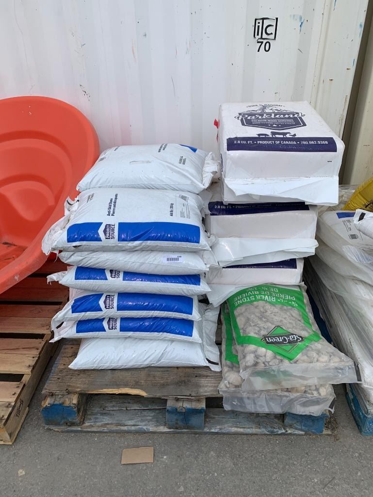 Bulk Lot of Assorted Landscaping Materials, Including Anti-Skid Stone, Wood Shavings, and River Stone