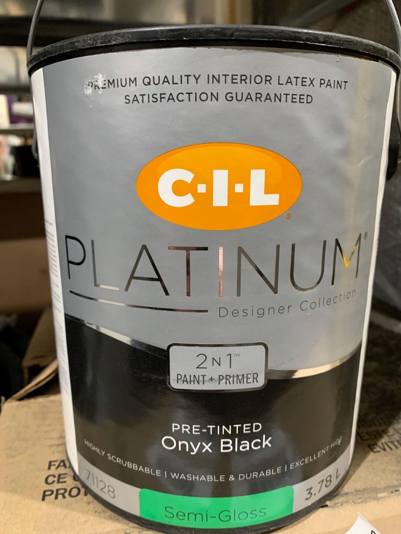 C-I-L Platinum Designer Collection 2 in 1 Paint + Primer Pre-tinted Onyx Black SEMI-GLOSS 711283.78L