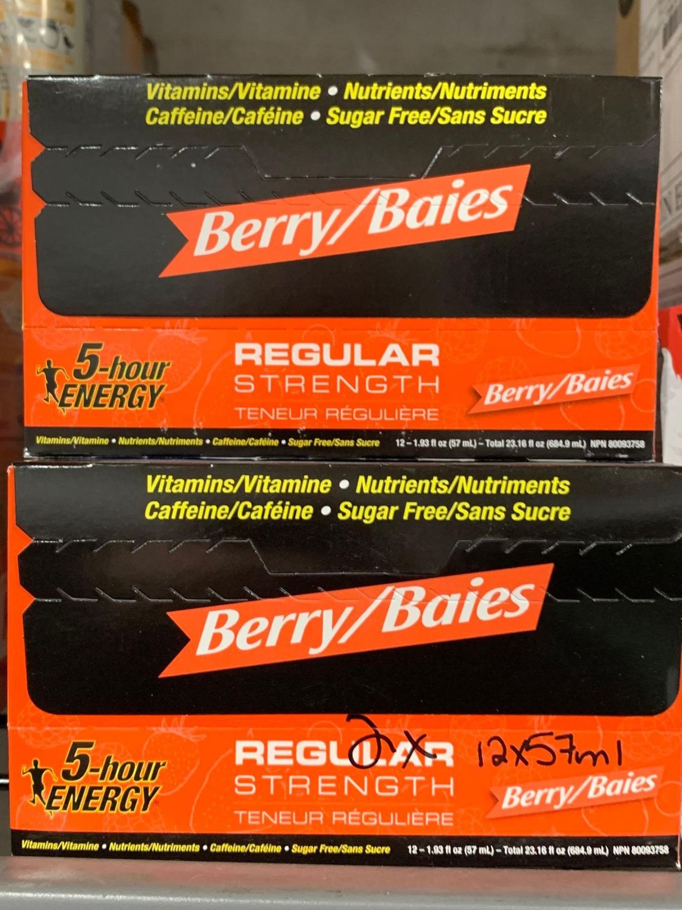 CASE LOT 5 Hour Energy Regular Strength 12x57ml x's 2 cases