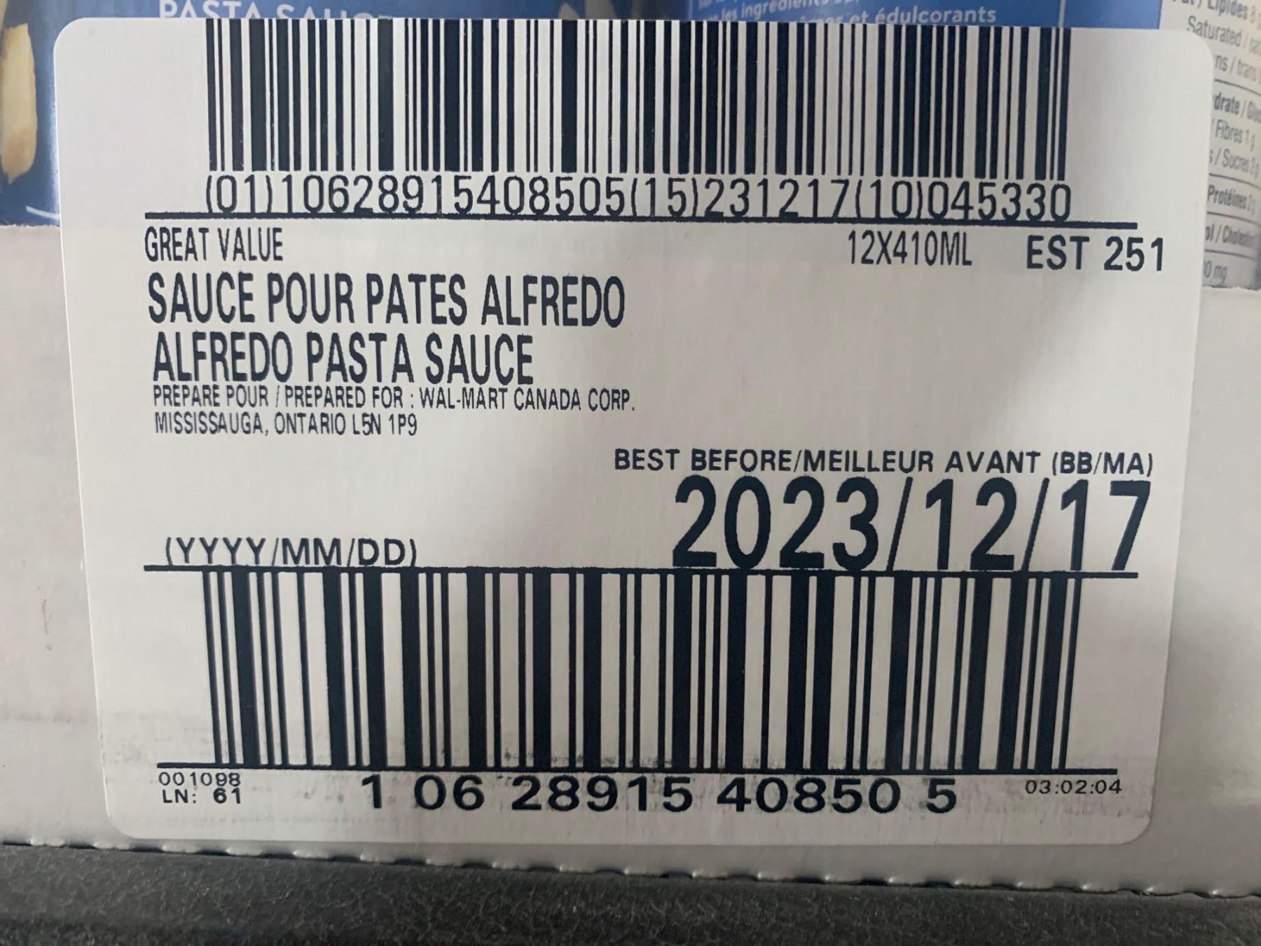 CASE LOT - Alfredo sauce 12 x 410ml