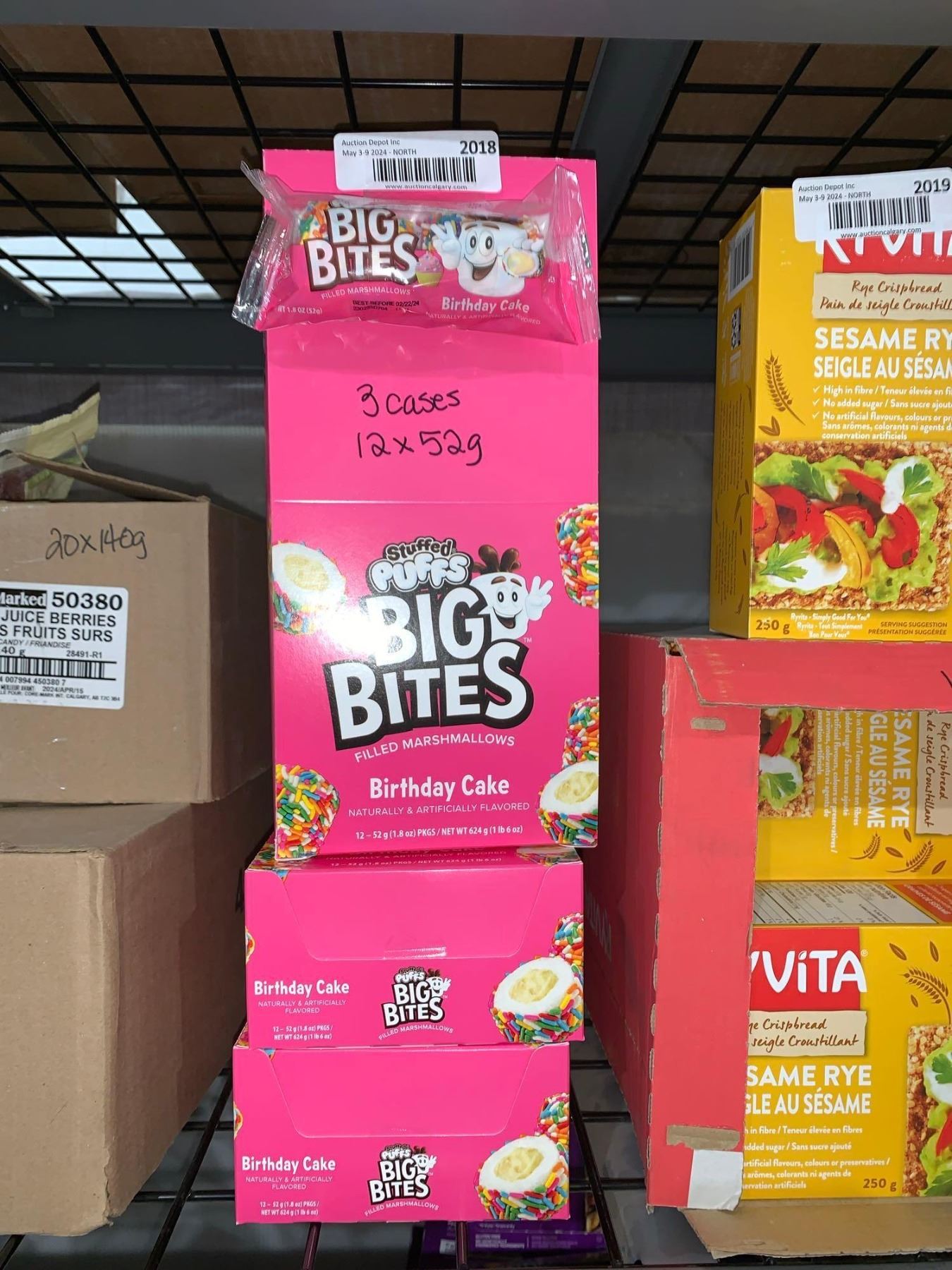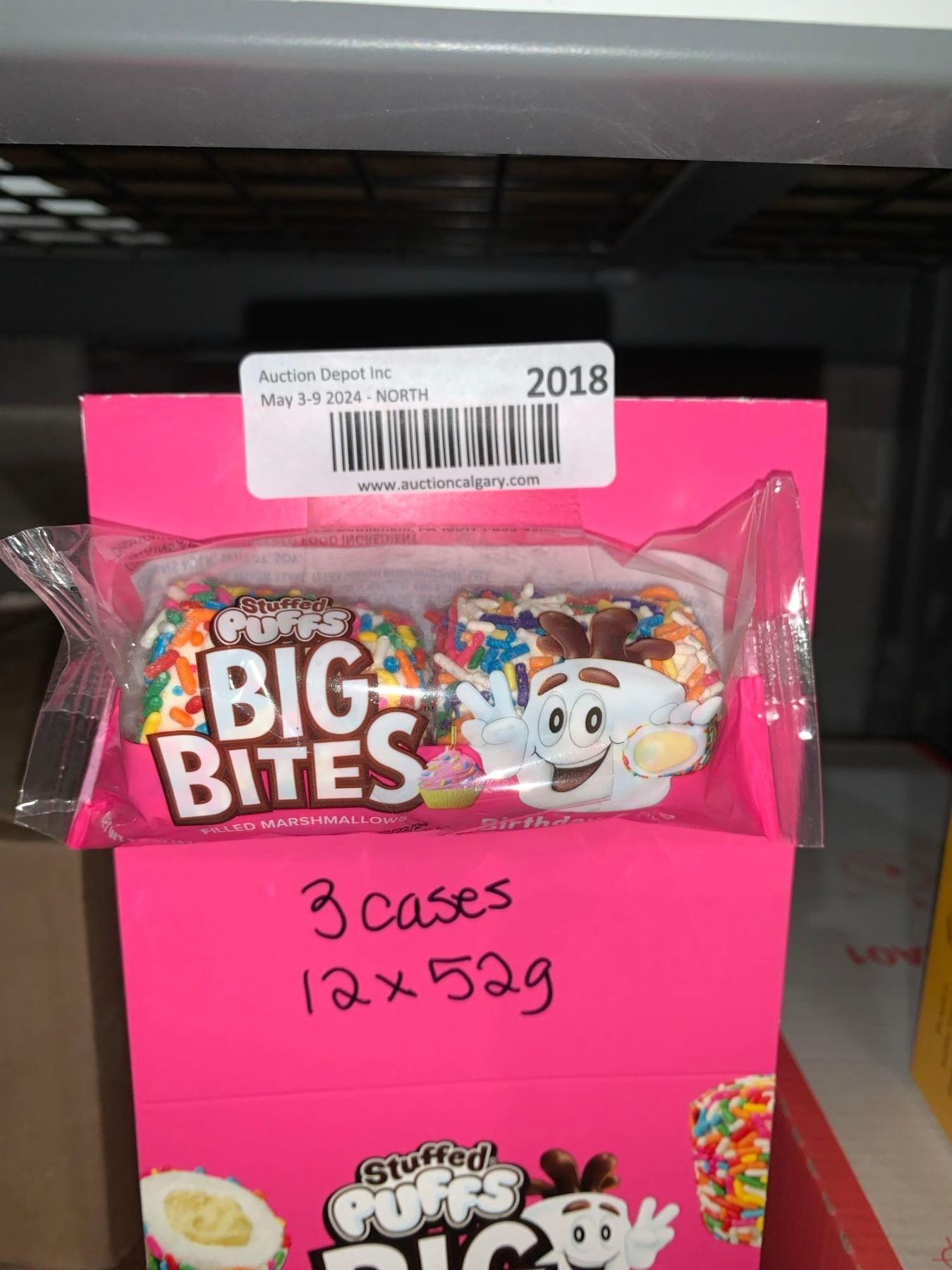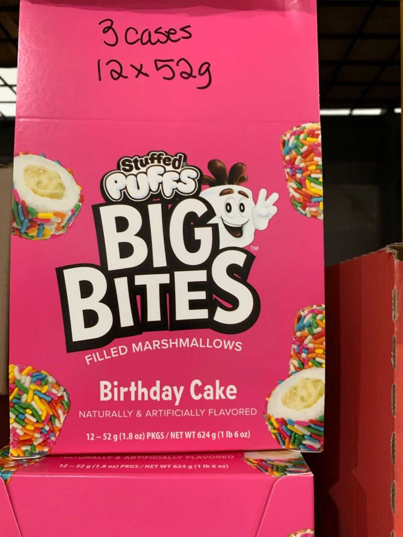 CASE LOT - Big Bites Birthday cake filled marshmellow 3 x 12 x 52g