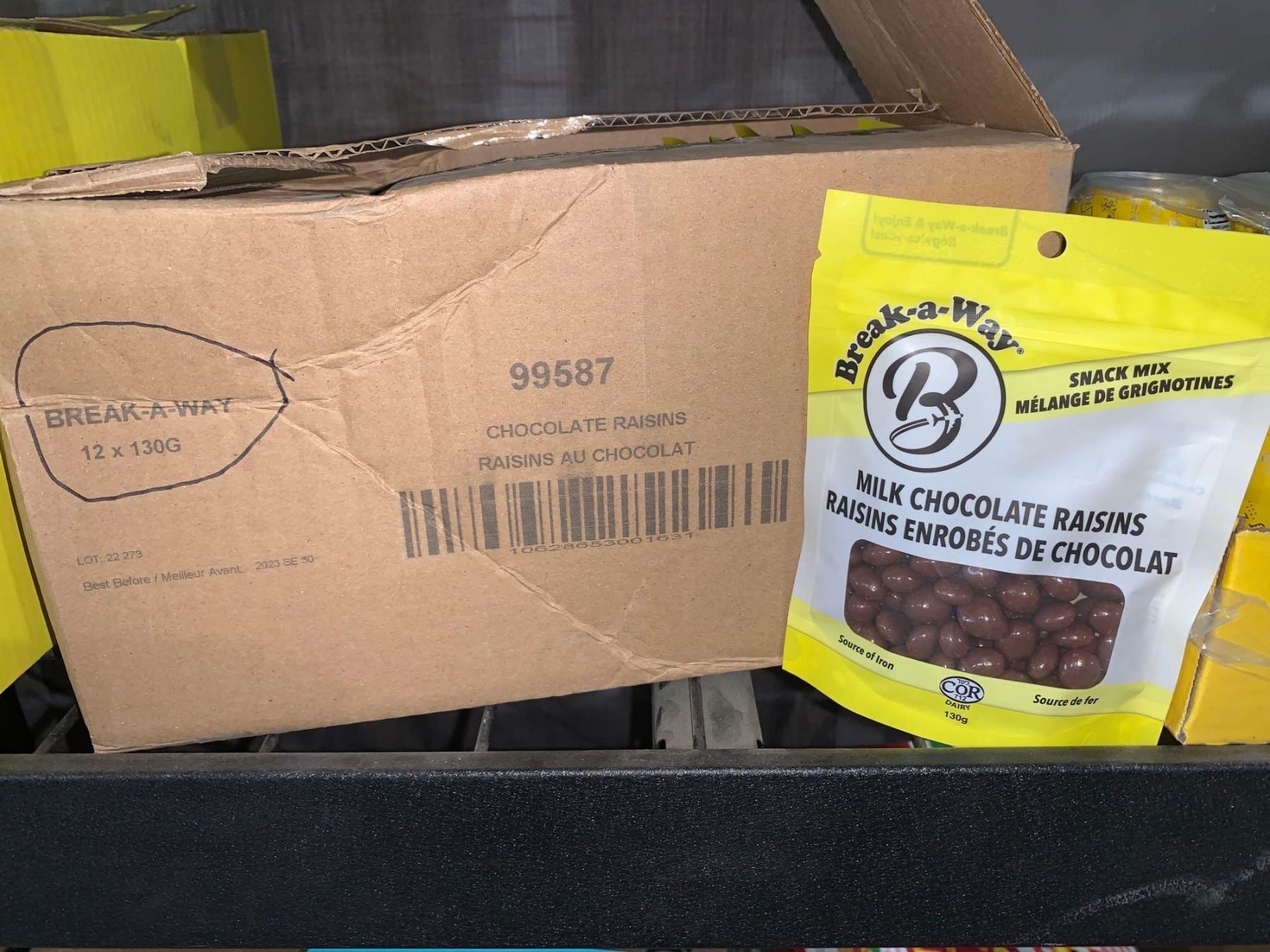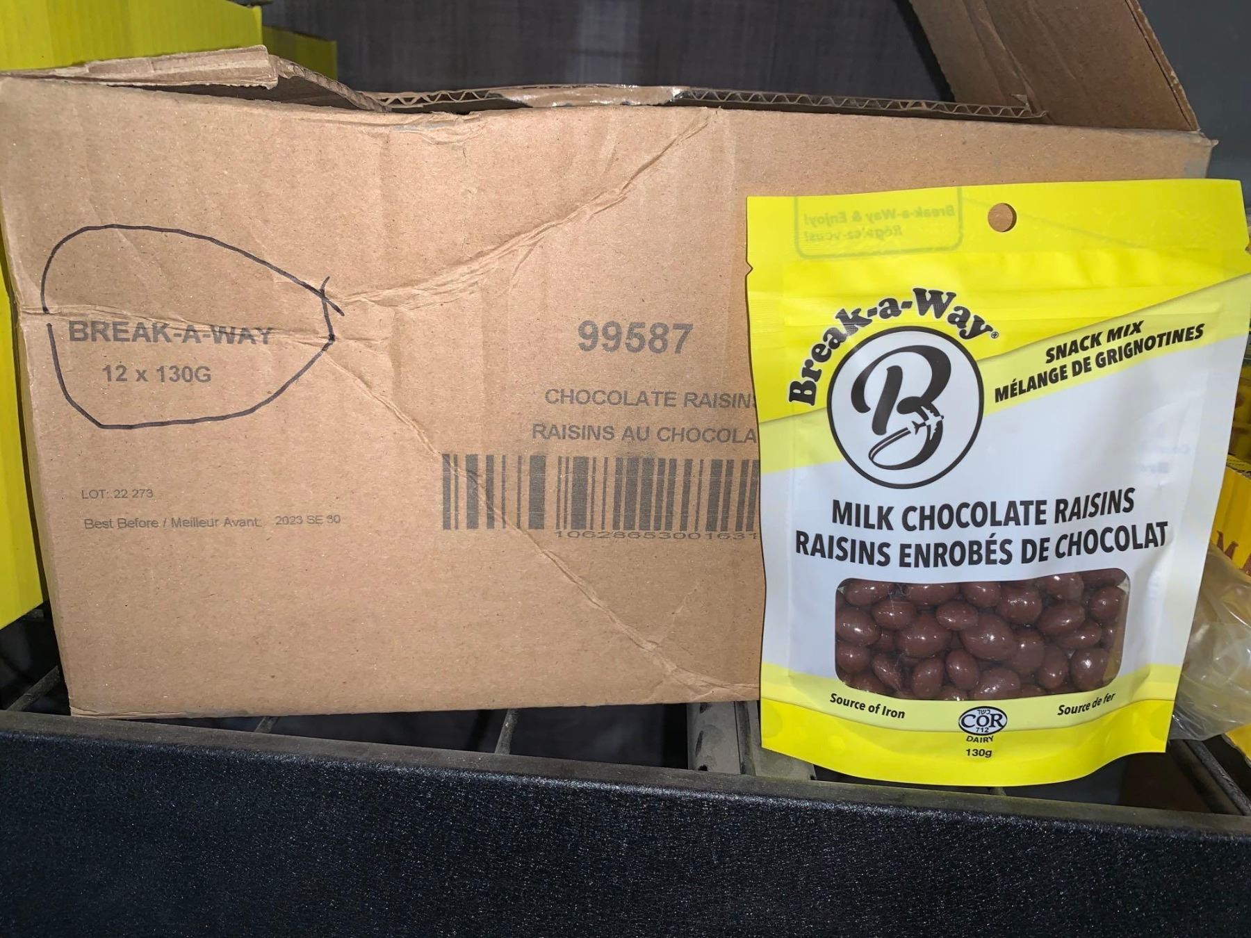 CASE LOT - Break-a-way milk chocolate raisins 12 x 130g