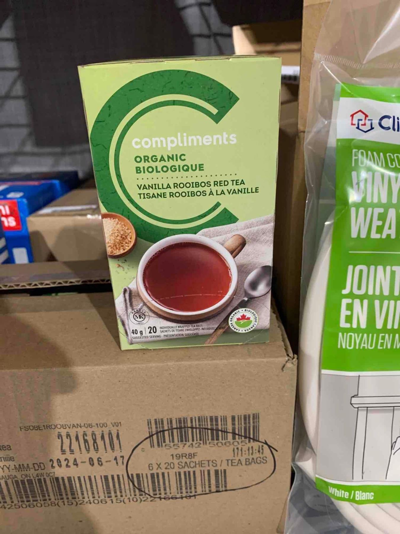 CASE LOT - Compliments Organic Vanilla Rooibos Red Tea 6X20 Tea Bags