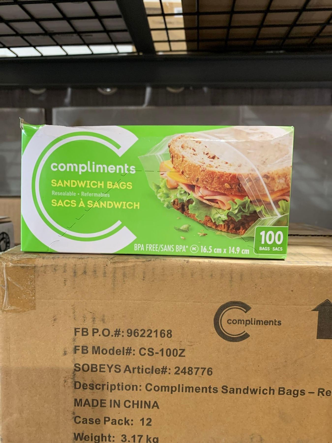 CASE LOT - Compliments Sandwich Bags (resealable) 12x100 Count