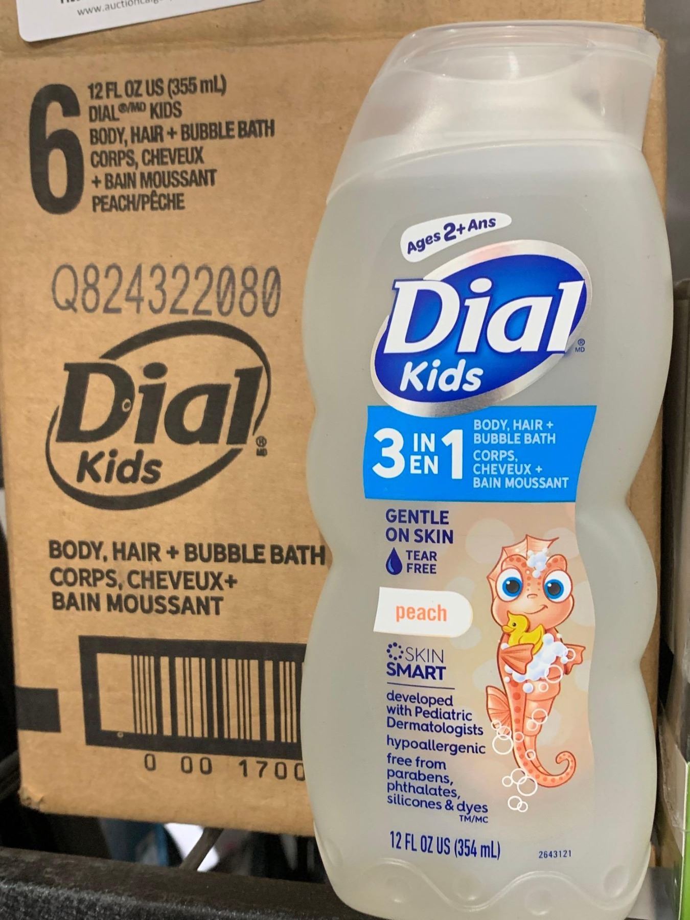 CASE LOT Dial Kids 3 in 1 Body, Hair + Bubble Bath Peach Scent 6x355ml