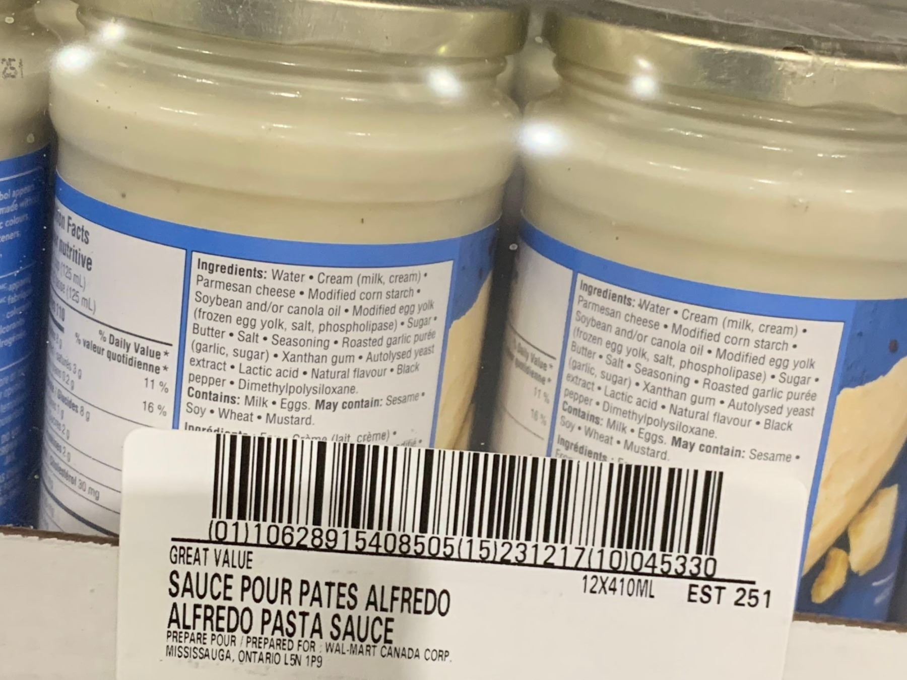 CASE LOT - Great Value Creamy Alfredo Pasta Sauce 12 x 410ml