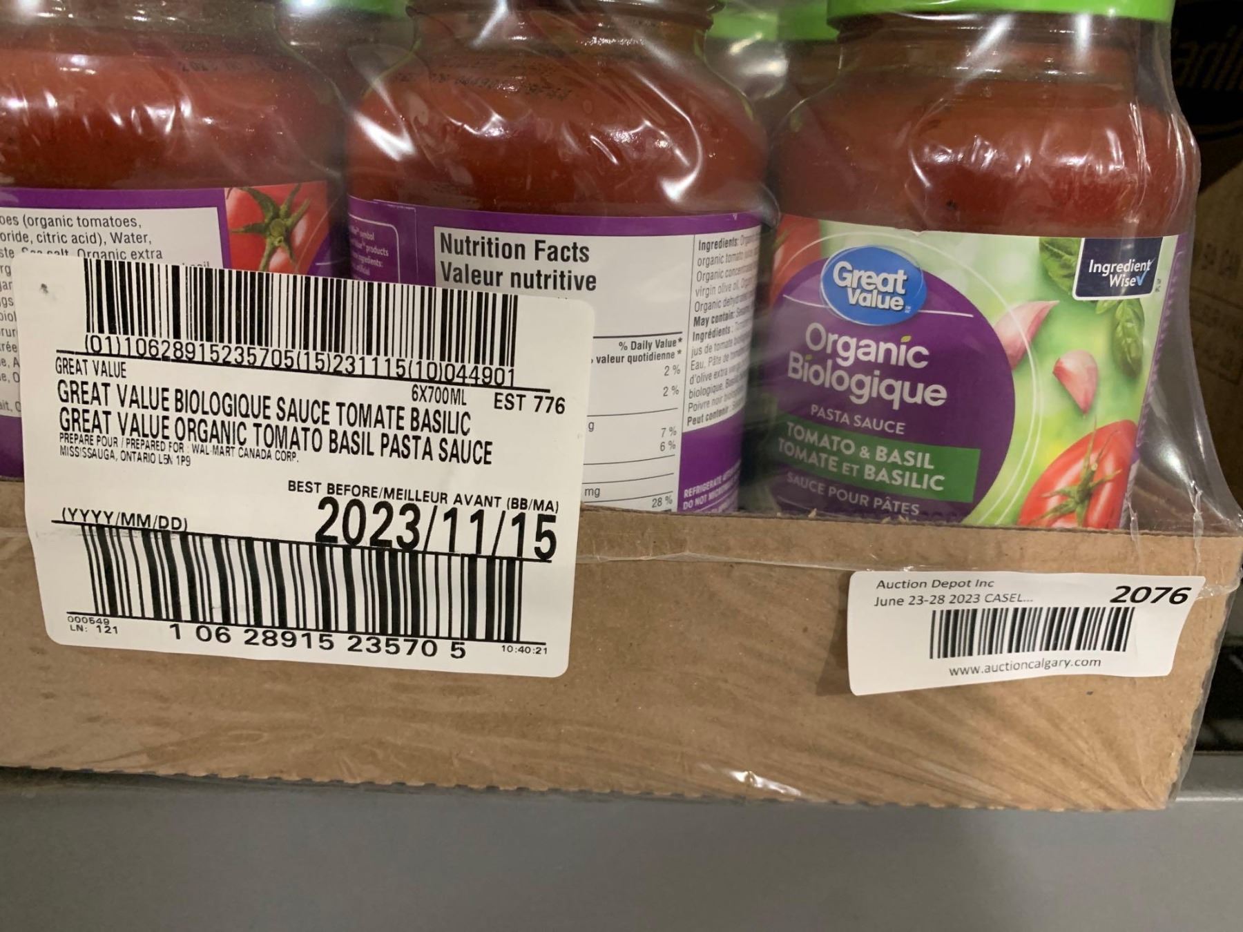 CASE LOT - Great Value Tomato & Basil Pasta Sauce 6 x 700ml