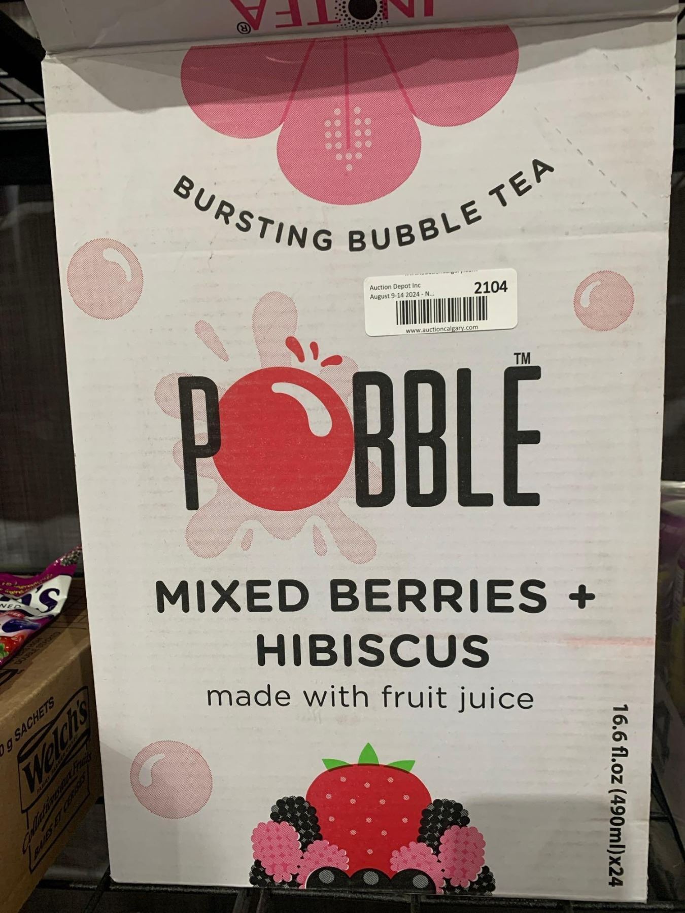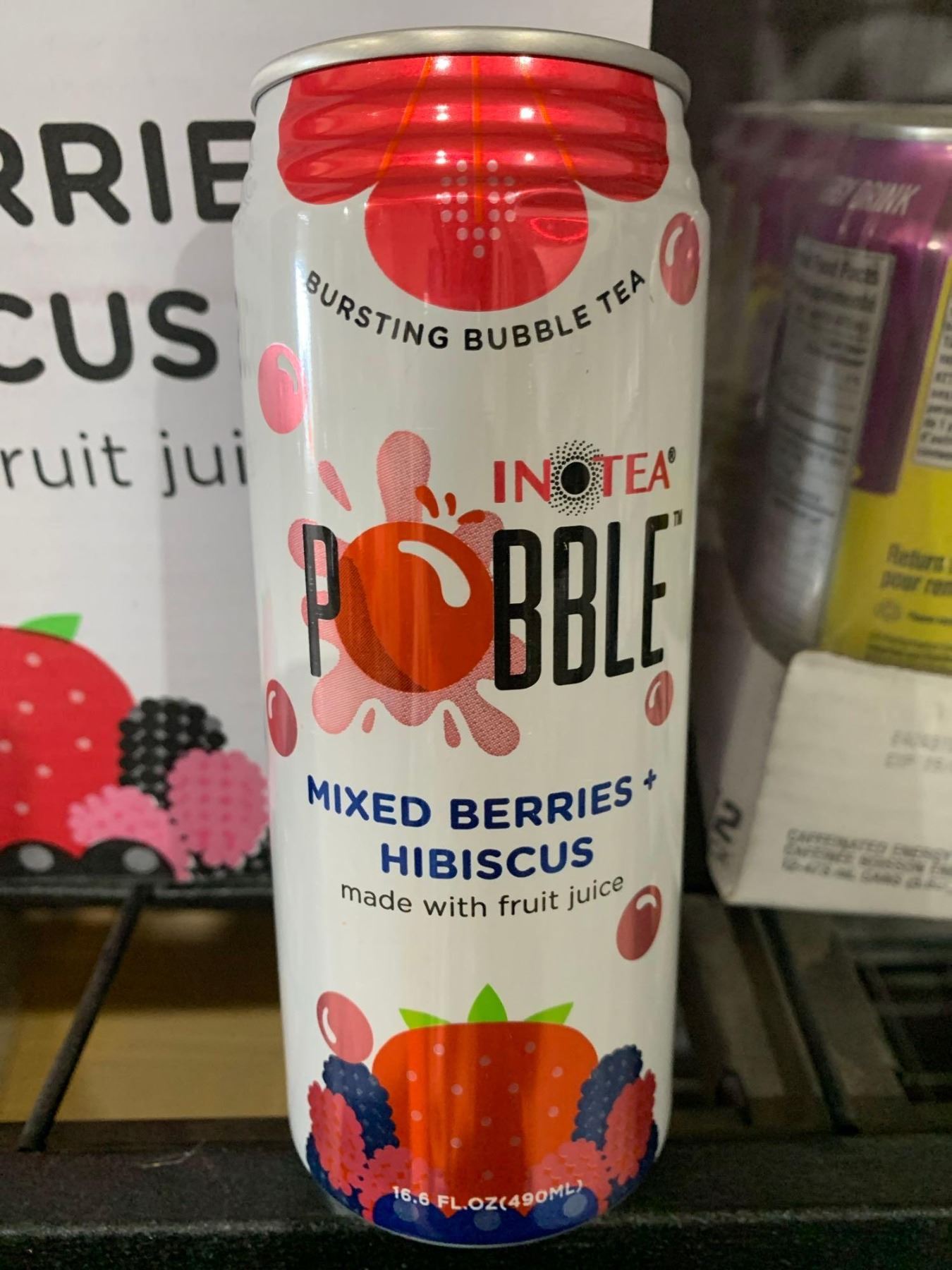 CASE LOT- Inotea Pobble Popping Boba Bubble Tea, Mixed Berries & Hibiscus w/ Real Fruit Juice 24 x 490ml
