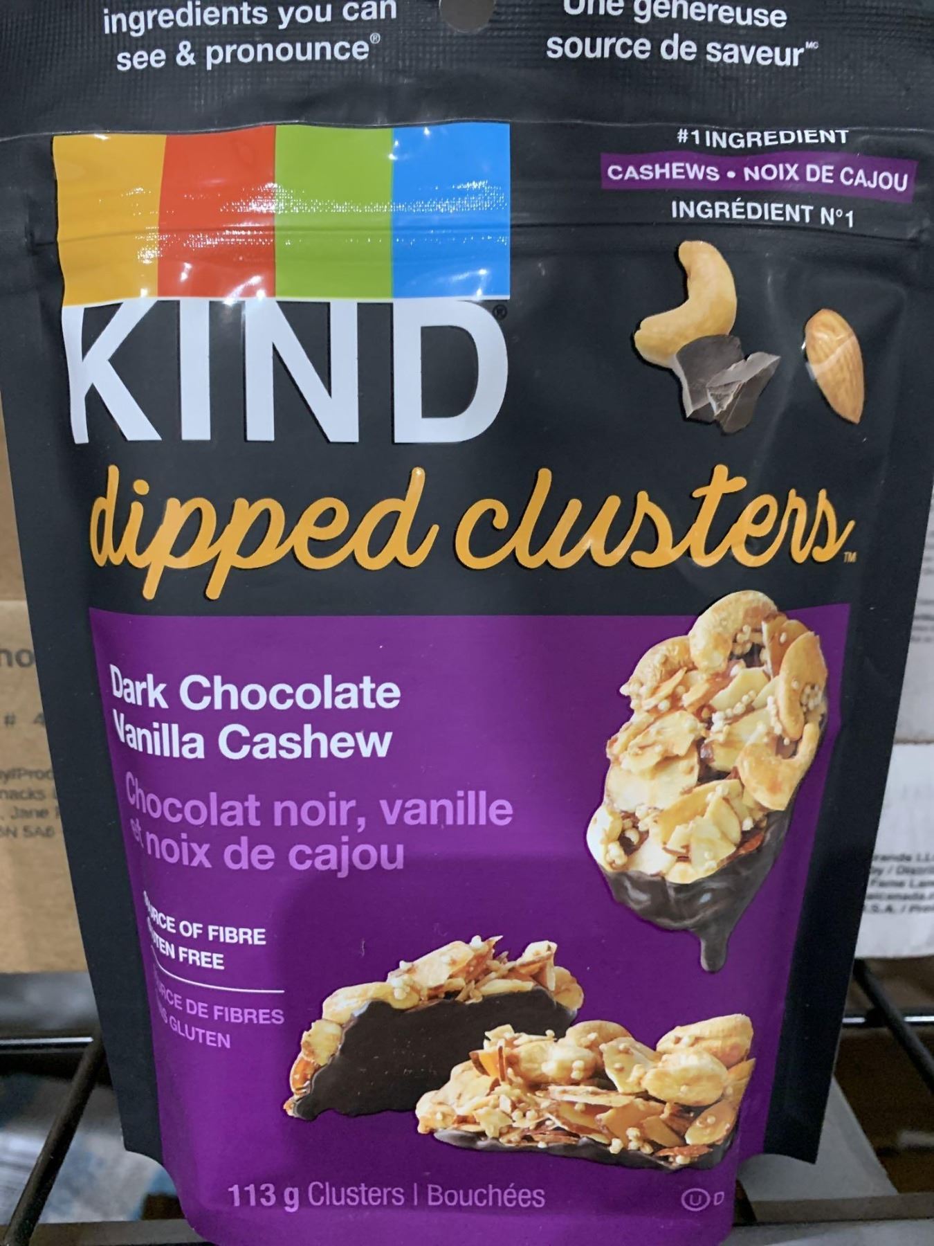 CASE LOT - KIND dark chocolate vanilla cashew dipped clusters 8x113g