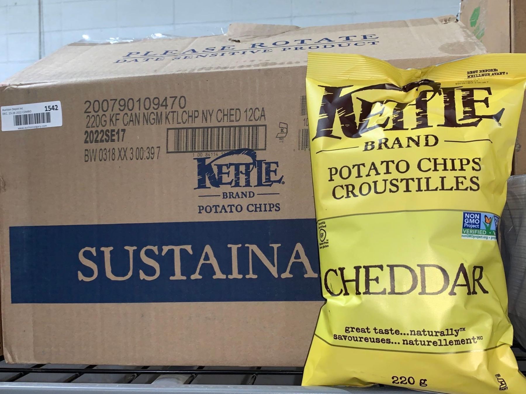 CASE LOT - Kettle Brand Cheddar Potato Chips 220g x 12