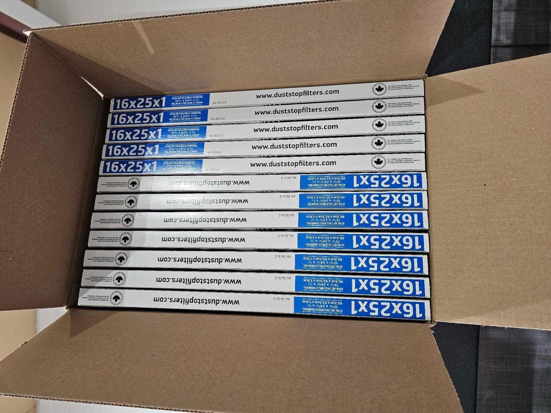 CASE LOT - Lot of 12 Duststop Air Filters 16x25x1 FBRGL Air Filter