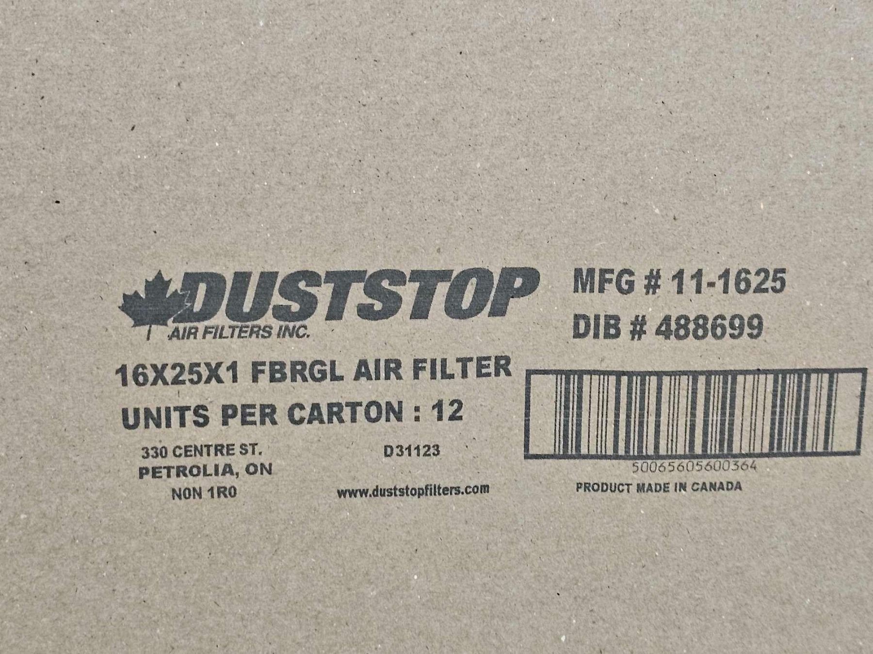 CASE LOT - Lot of 12 Duststop Air Filters 16x25x1 FBRGL Air Filter