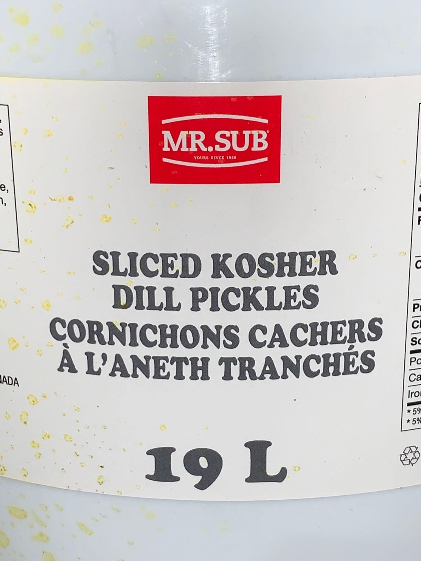 CASE LOT MR. SUB Sliced Kosher Dill Pickles 19L Pail