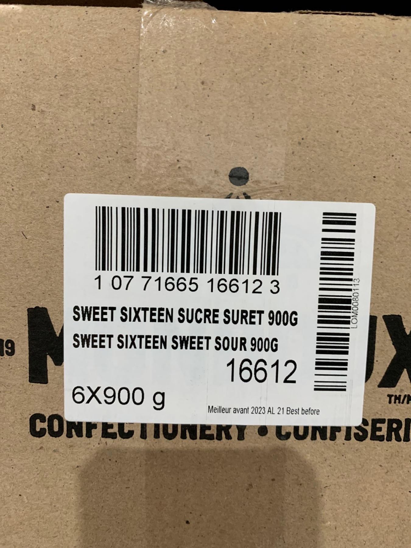 CASE LOT - Mondoux Sweet Sixteen Sweet & amp; Sour Gummy Candy 6x900g