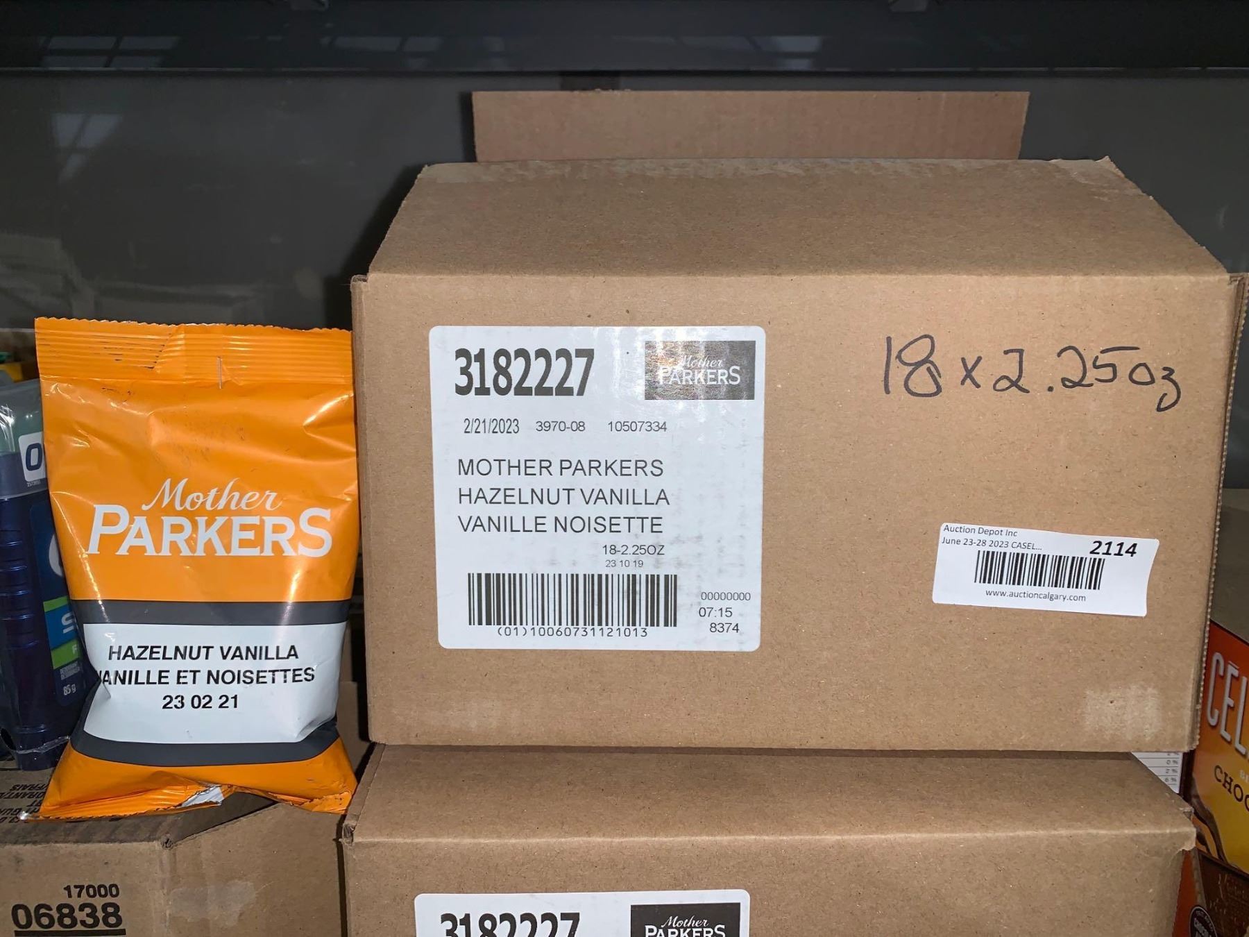 CASE LOT - Mother Parkers Hazelnut Vanilla Coffee Grounds 18x2.25oz packets