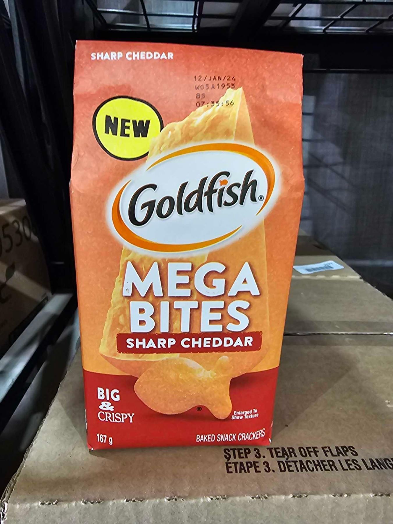 CASE LOT - New Goldfish Mega Bites Sharp Cheddar Crackers 12x167g
