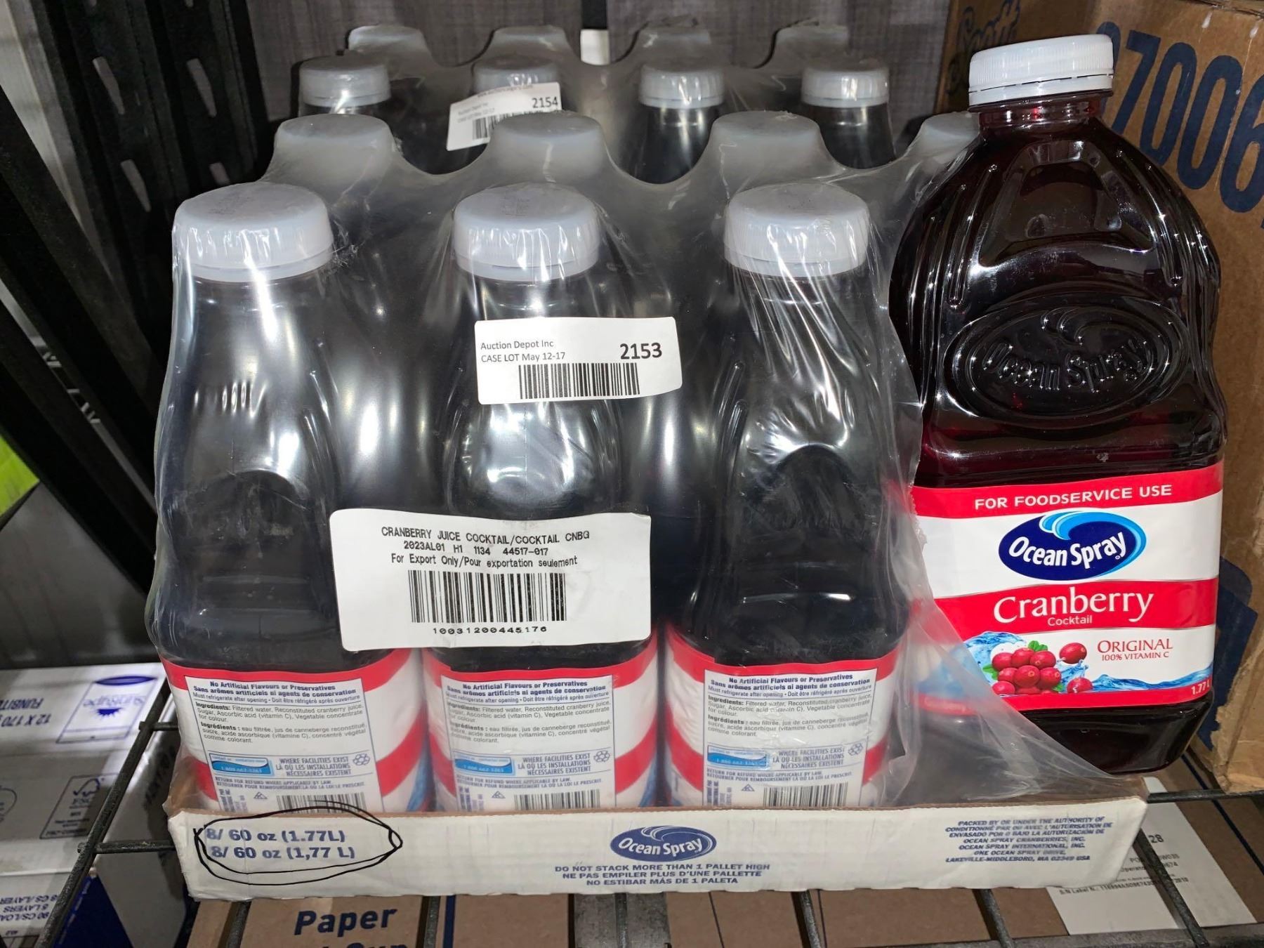 CASE LOT Ocean Spray Cranberry Juice Cocktail 8x1.77L