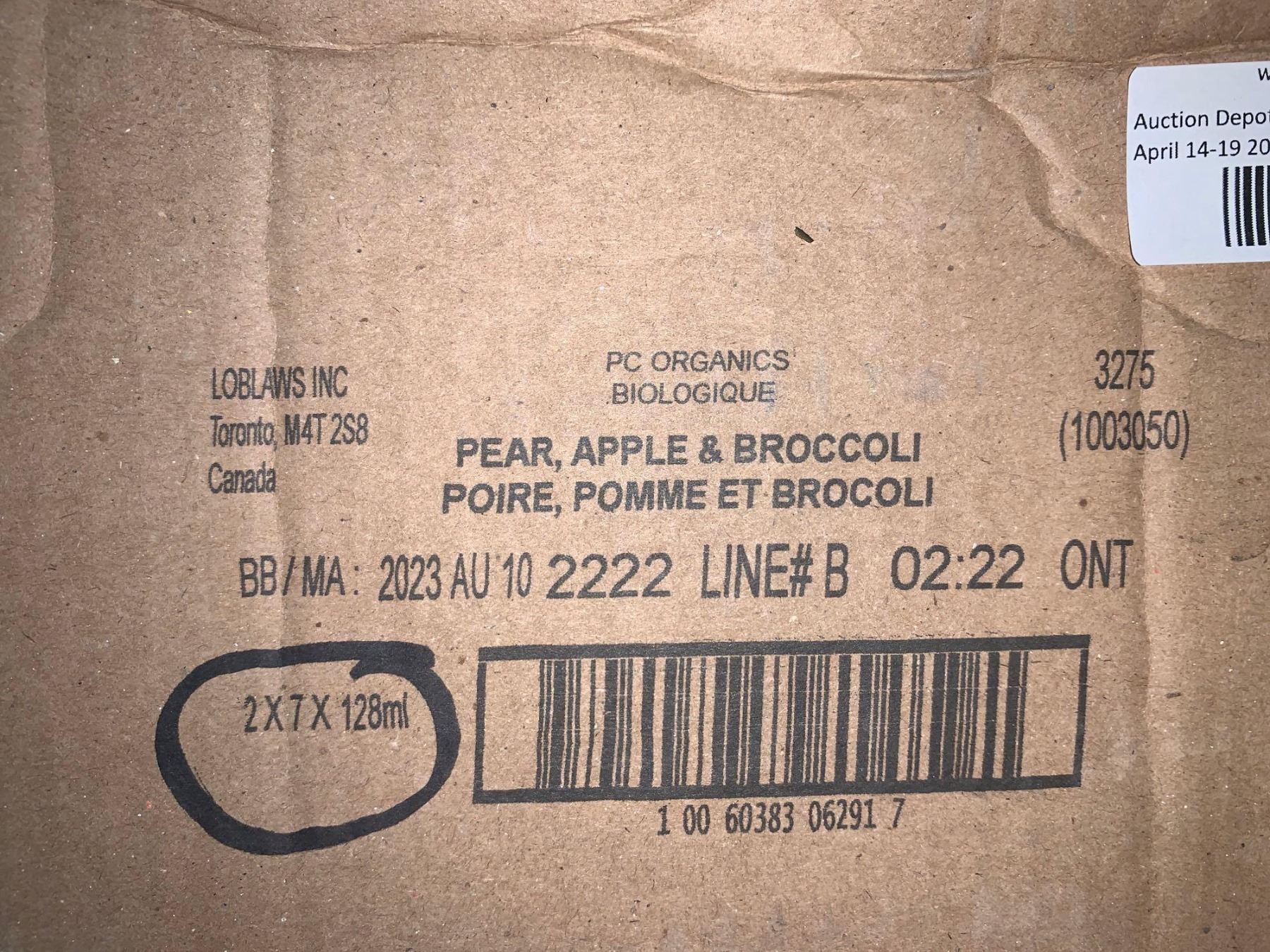 CASE LOT PC Organics Pear. Apple & broccoli Baby Food 14x128ml
