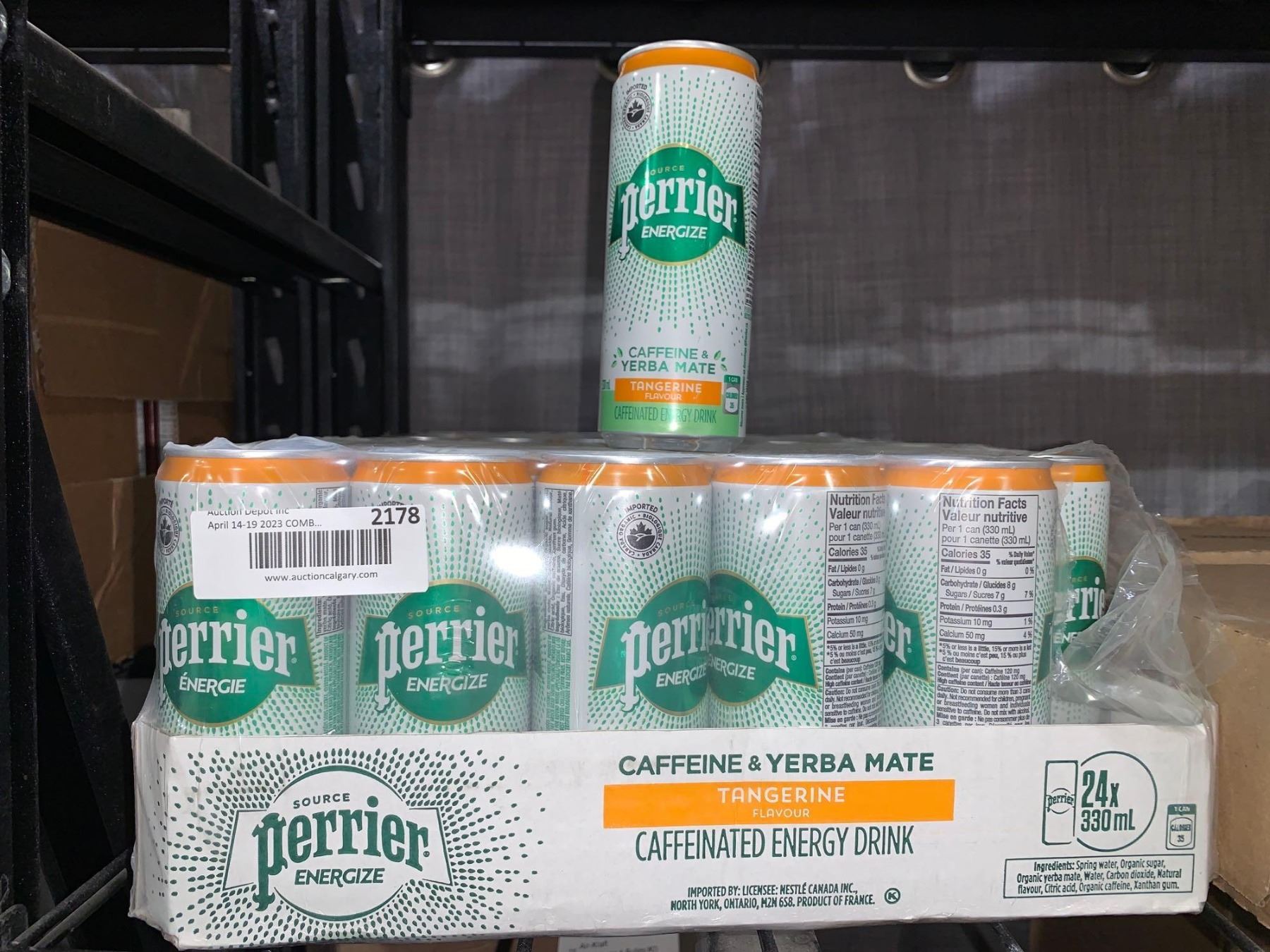 CASE LOT Perrier Caffeine & Yerba Mate Tangerine Flavor Caffeinated Energy Drink 24 x 300ml